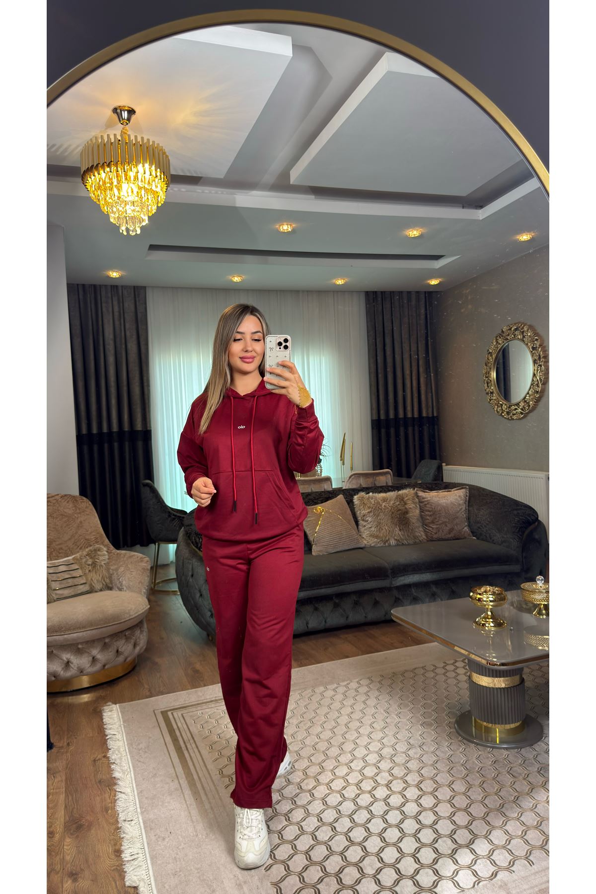 Fermuarlı Eşofman Takımı Siyahkırmızı