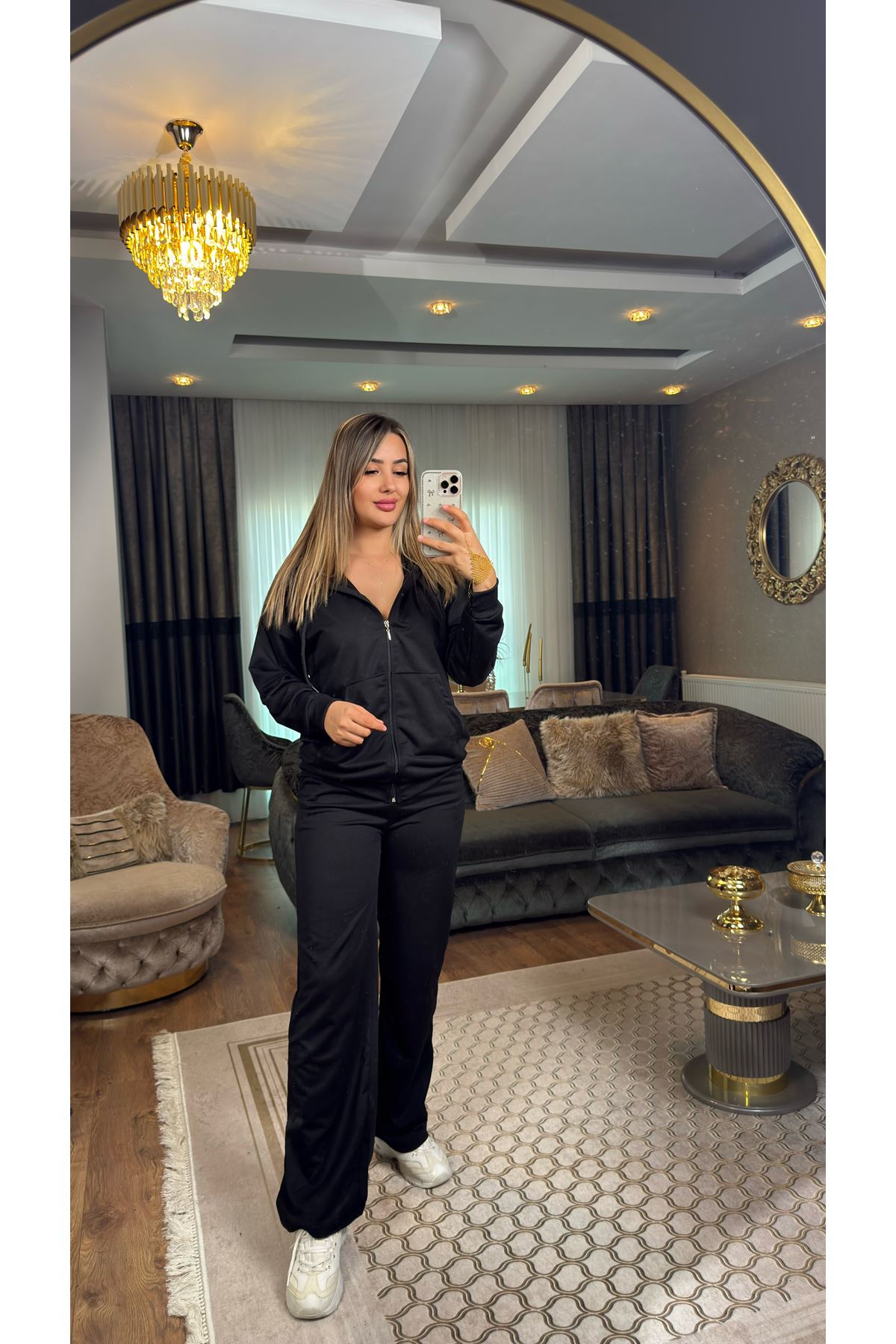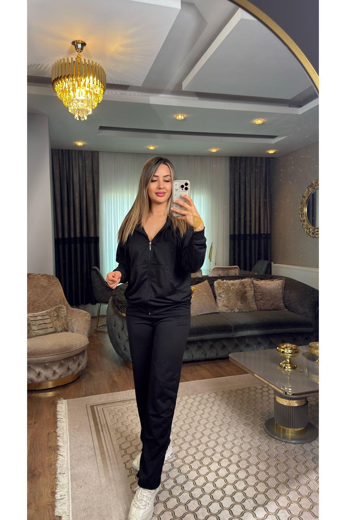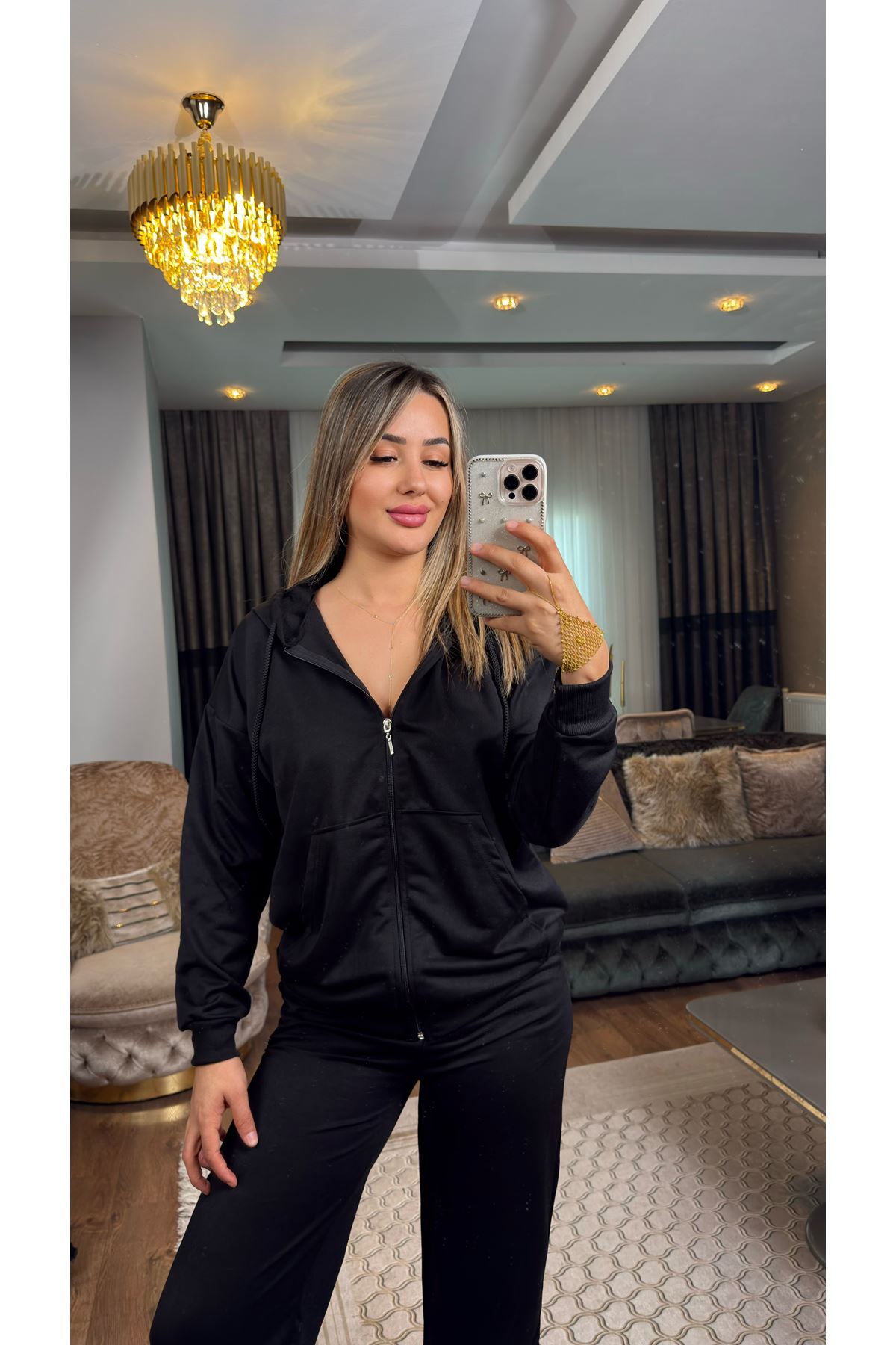2 İplik Kapşonlu Eşofman Takımı Siyah