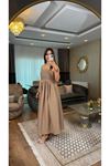 SIRT DEKOLTELİ ELBİSE-BEJ