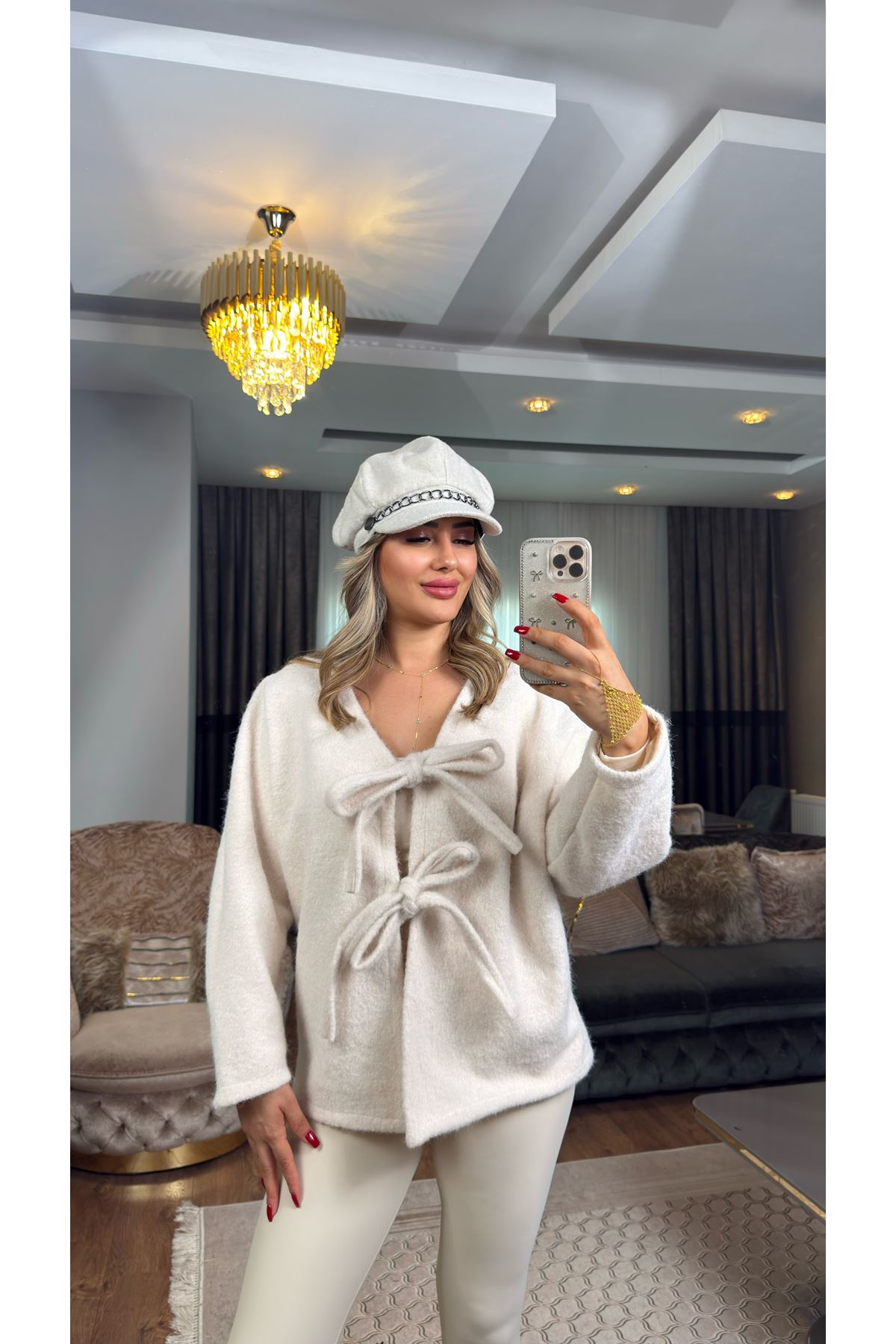 bağlamalı kaşe ceket-ekru
