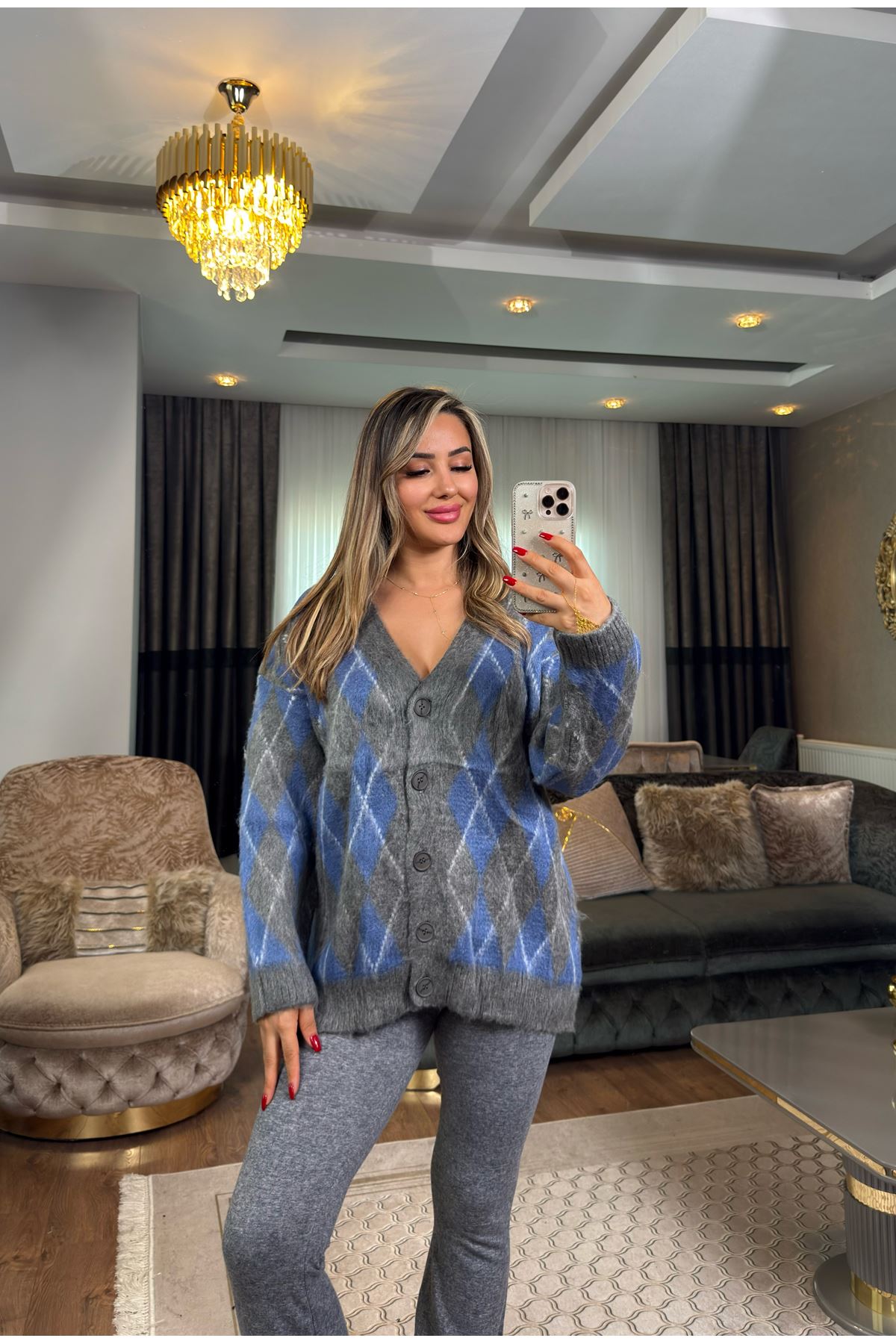 baklava desen hırka-grimavi
