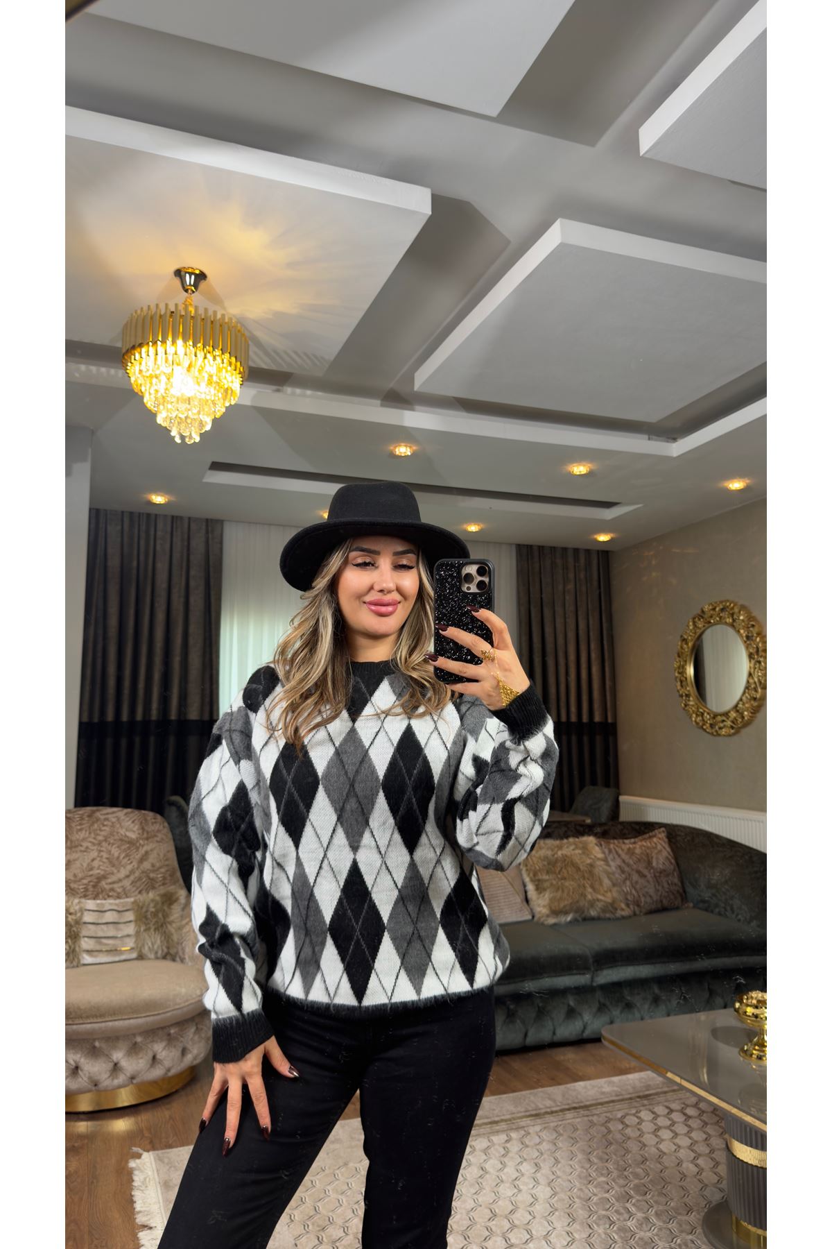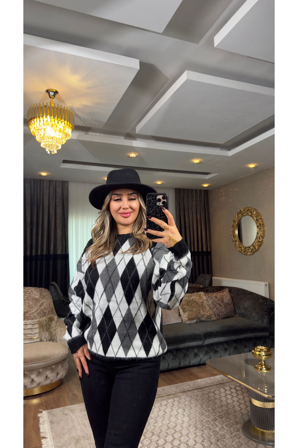 baklava desen kazak-gri