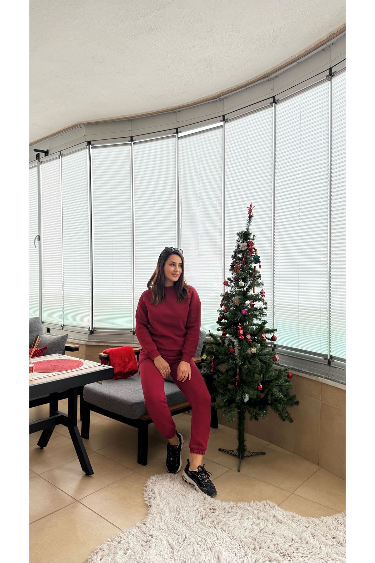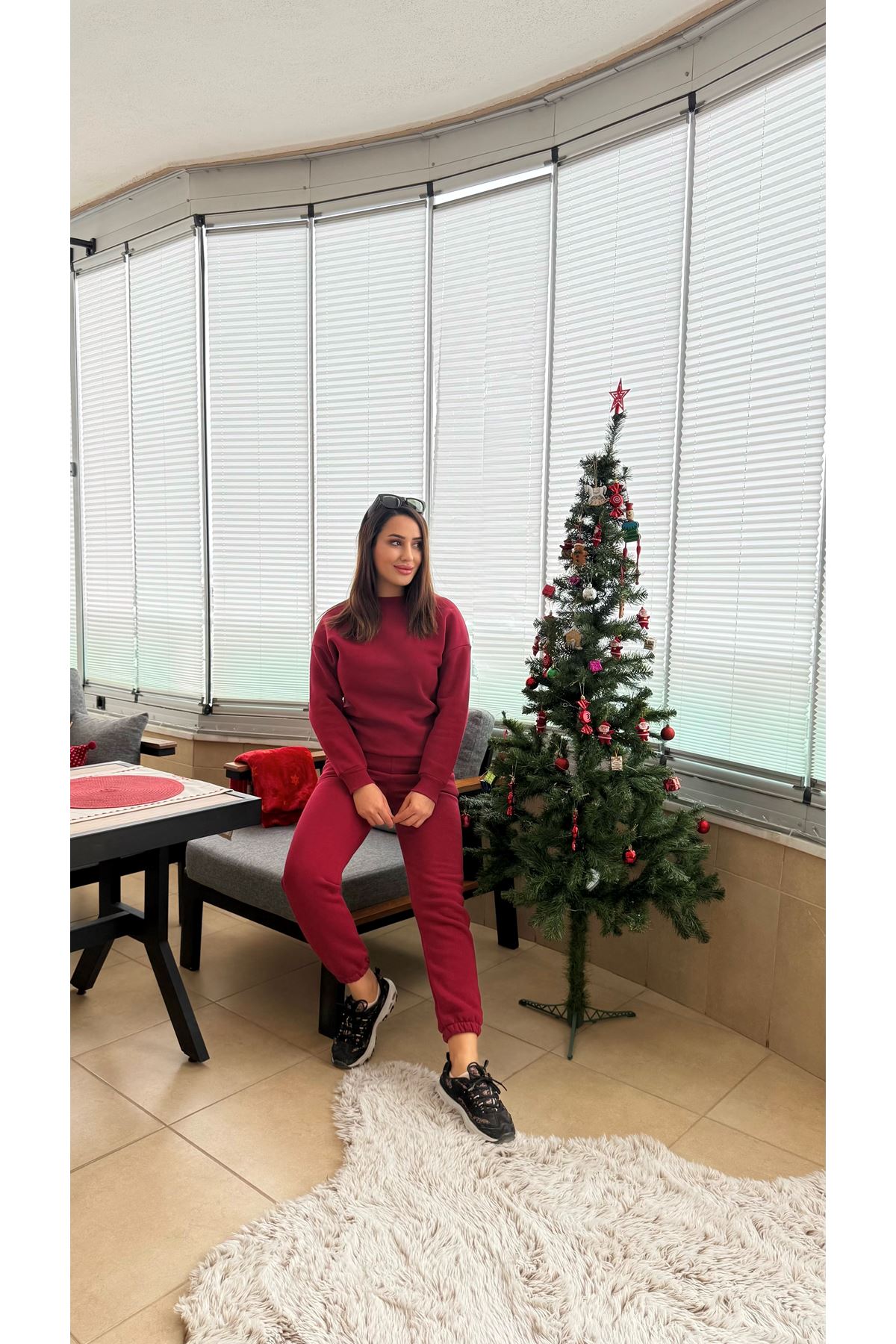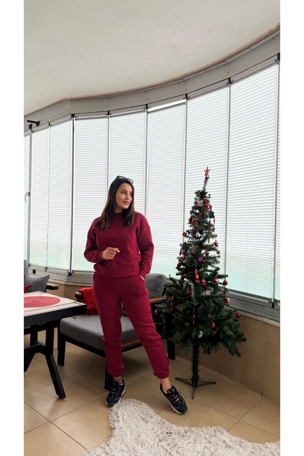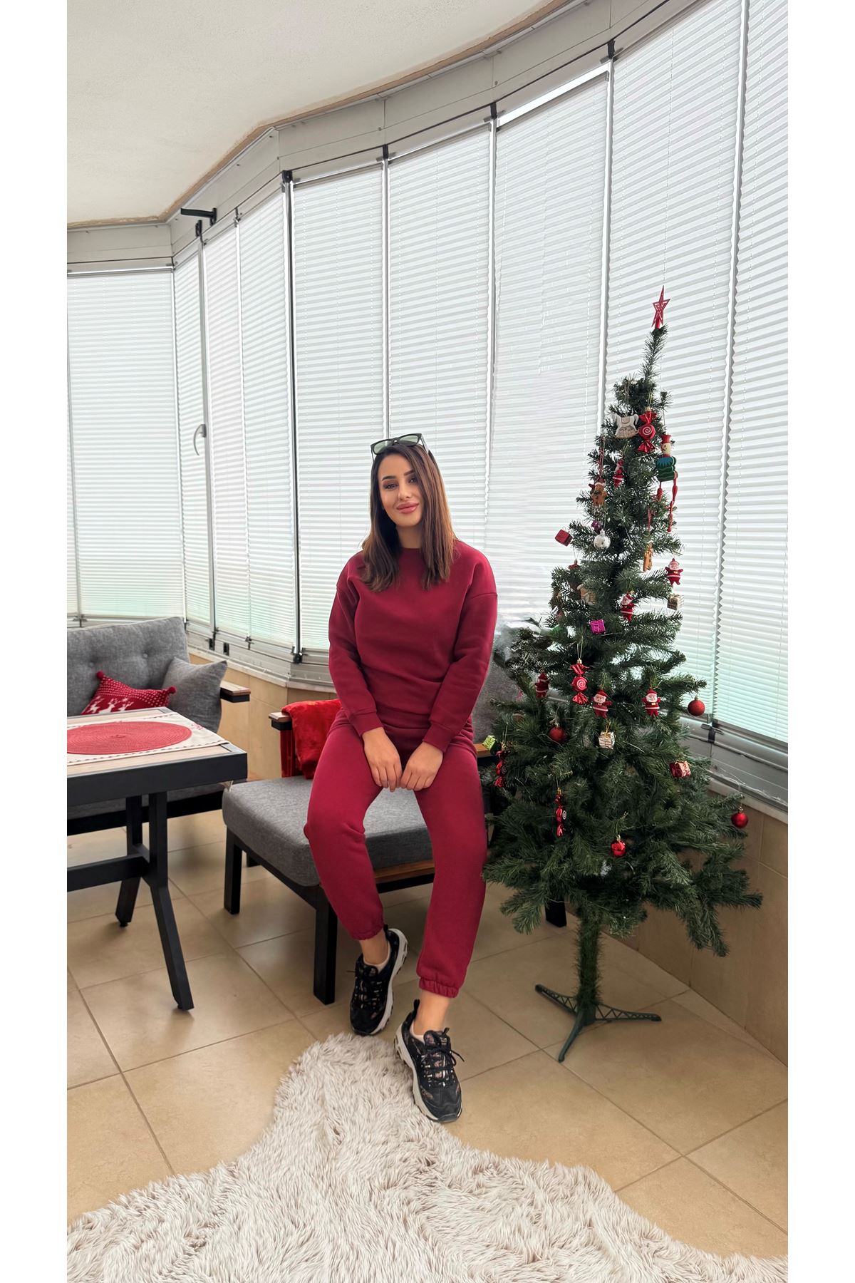 BİSİKLET YAKA 3 İPLİK TAKIM -Bordo