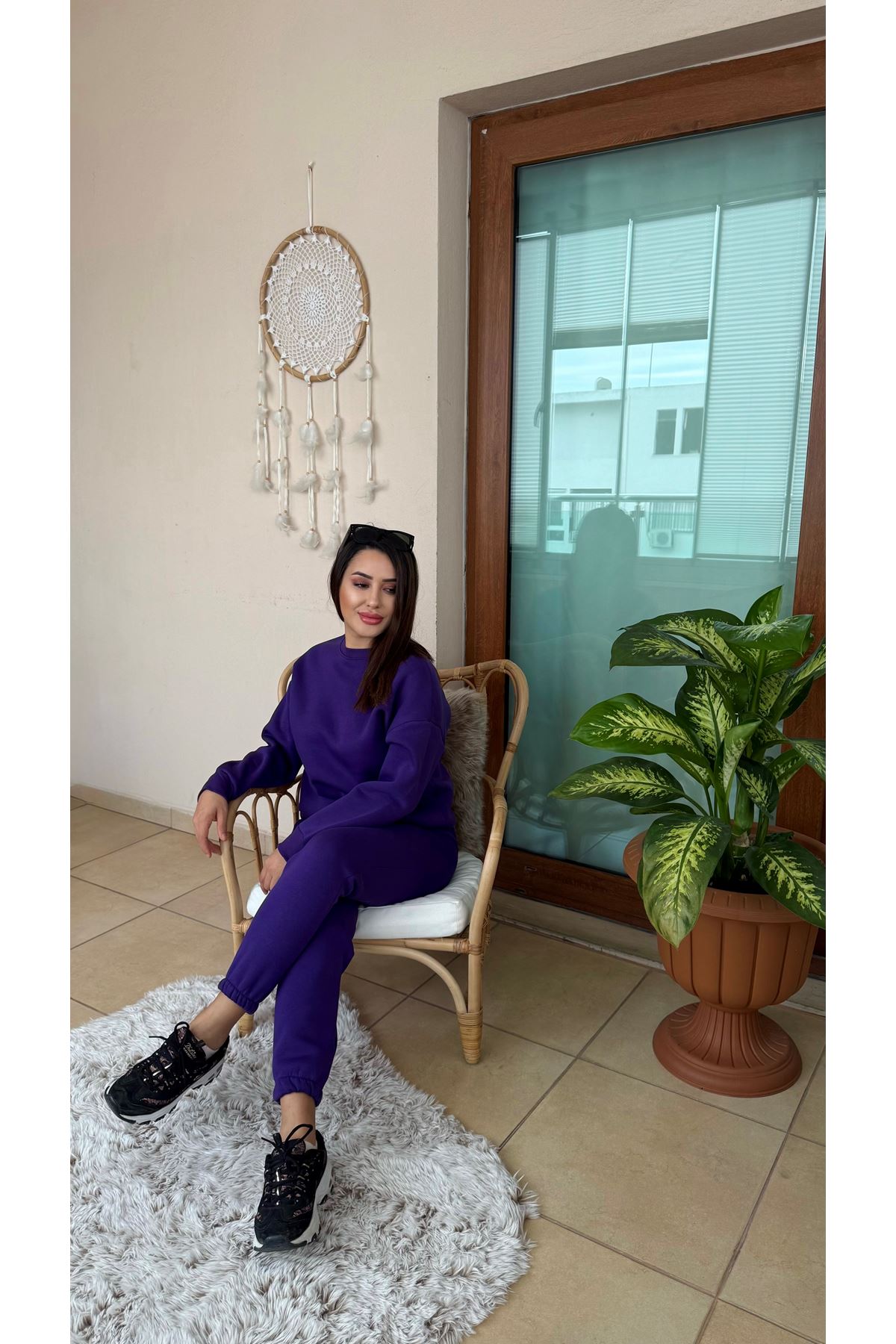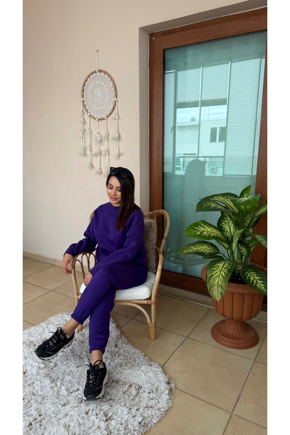 BİSİKLET YAKA 3 İPLİK TAKIM - MOR