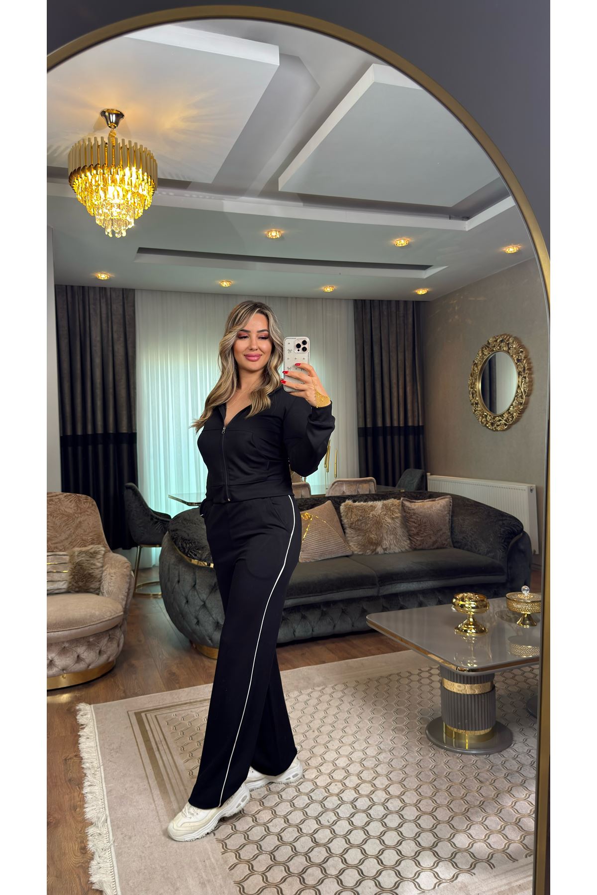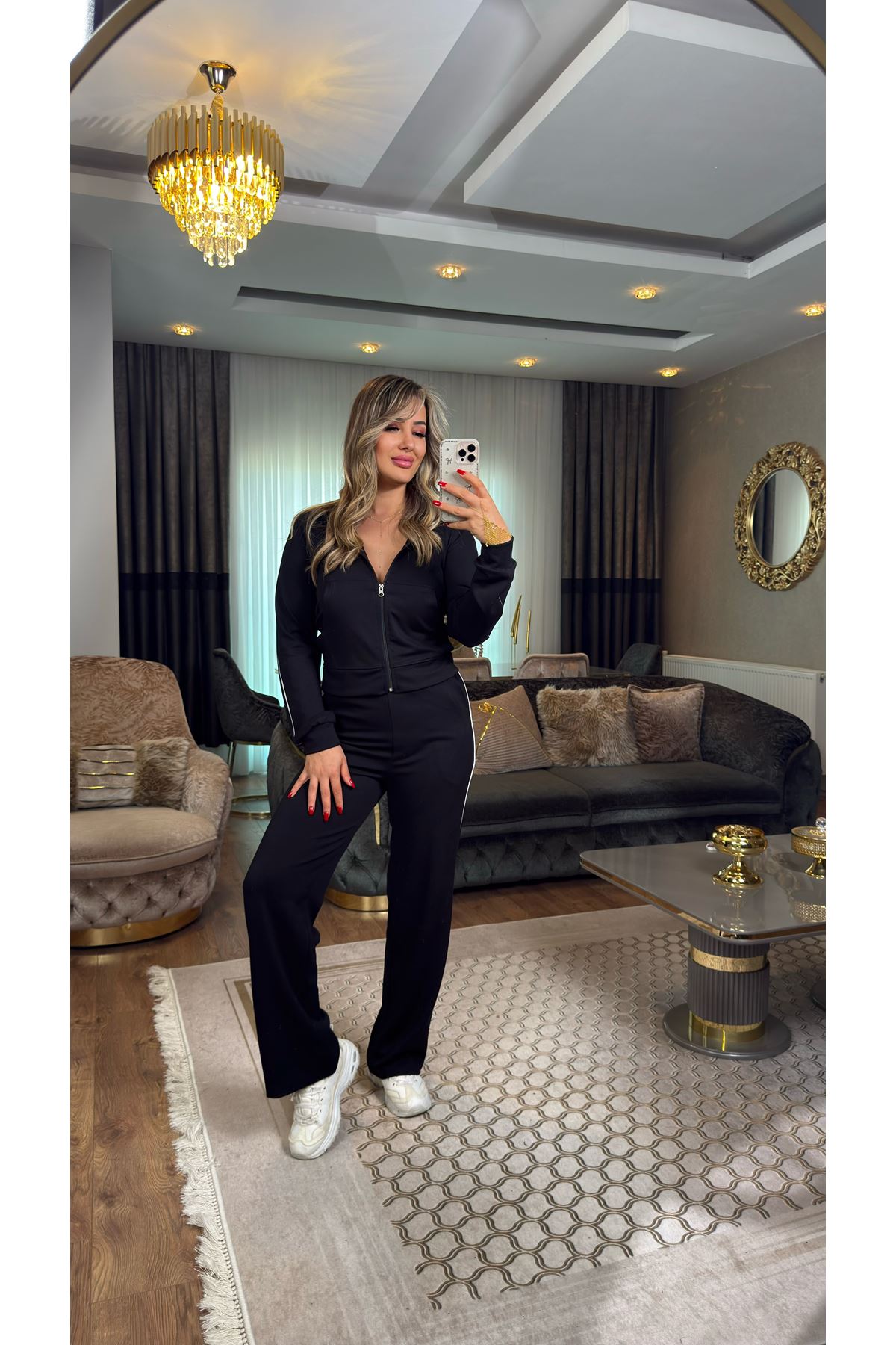 Fermuarlı Eşofman Takımı Siyahkırmızı