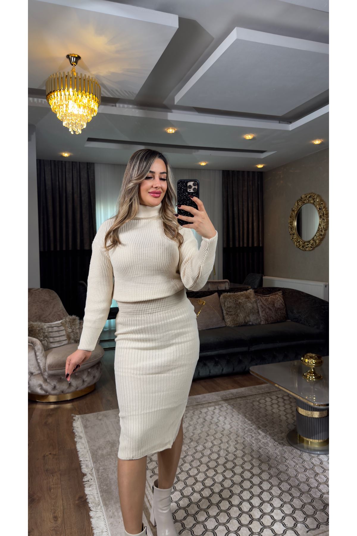 boğazlı triko etekli takım-taş