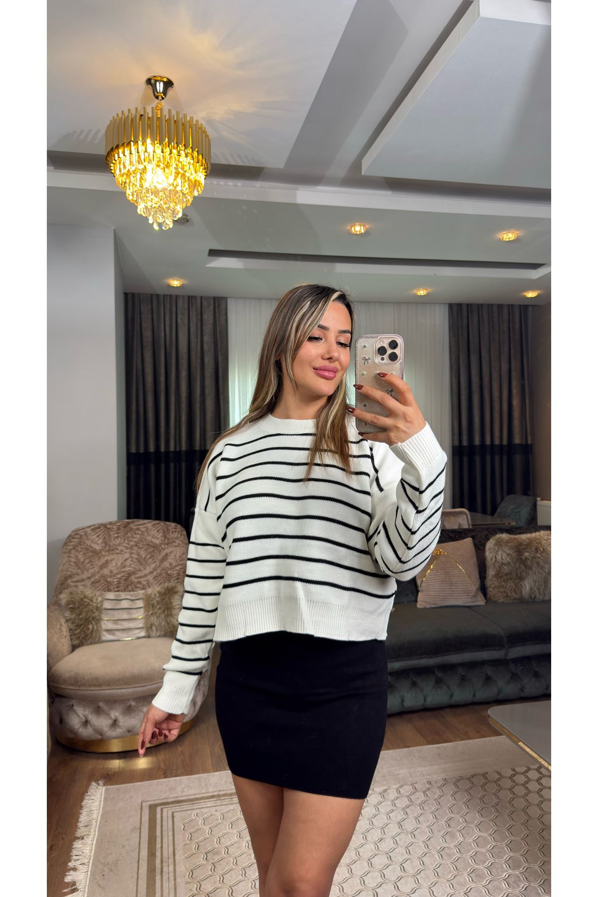 dilvin desenli şardonlu yumuşak dokulu triko kazak