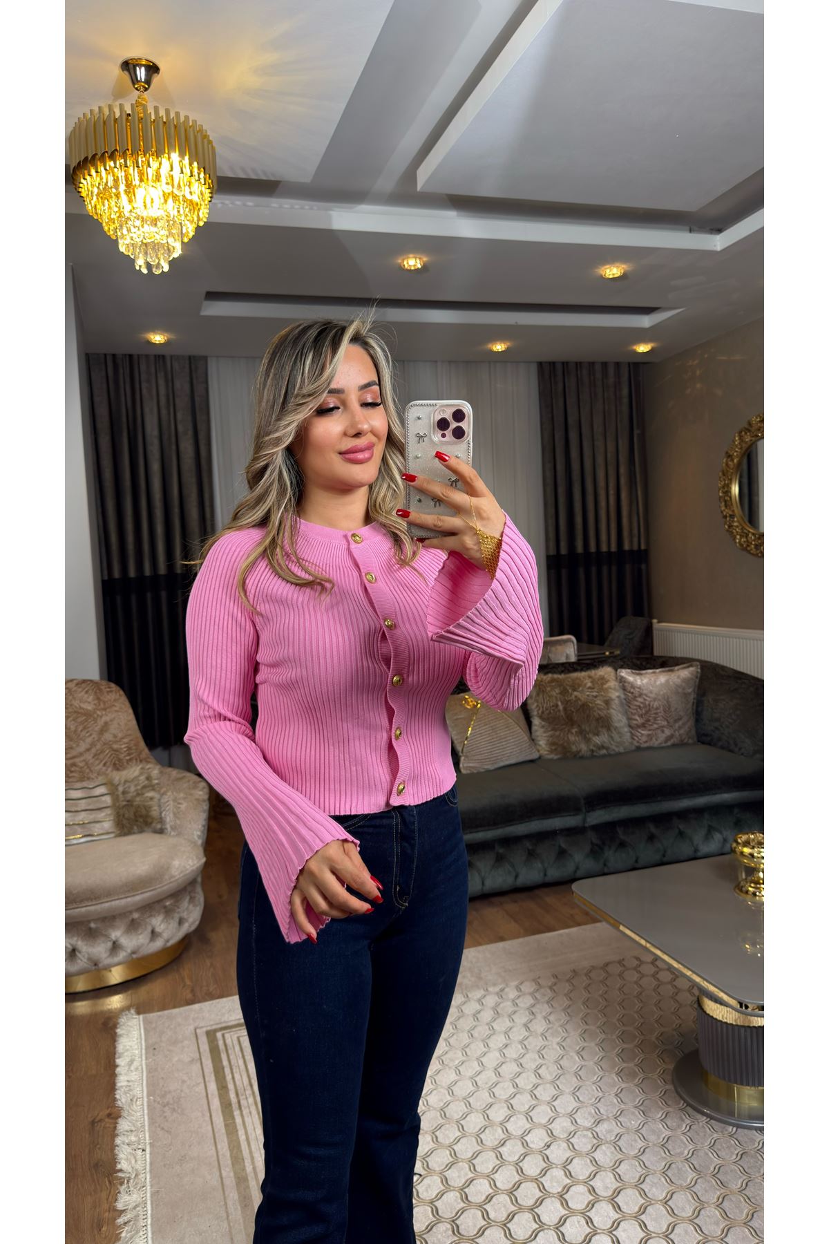 dilvin bisiklet yaka gold düğmeli ispanyol kol triko hırka-pembe