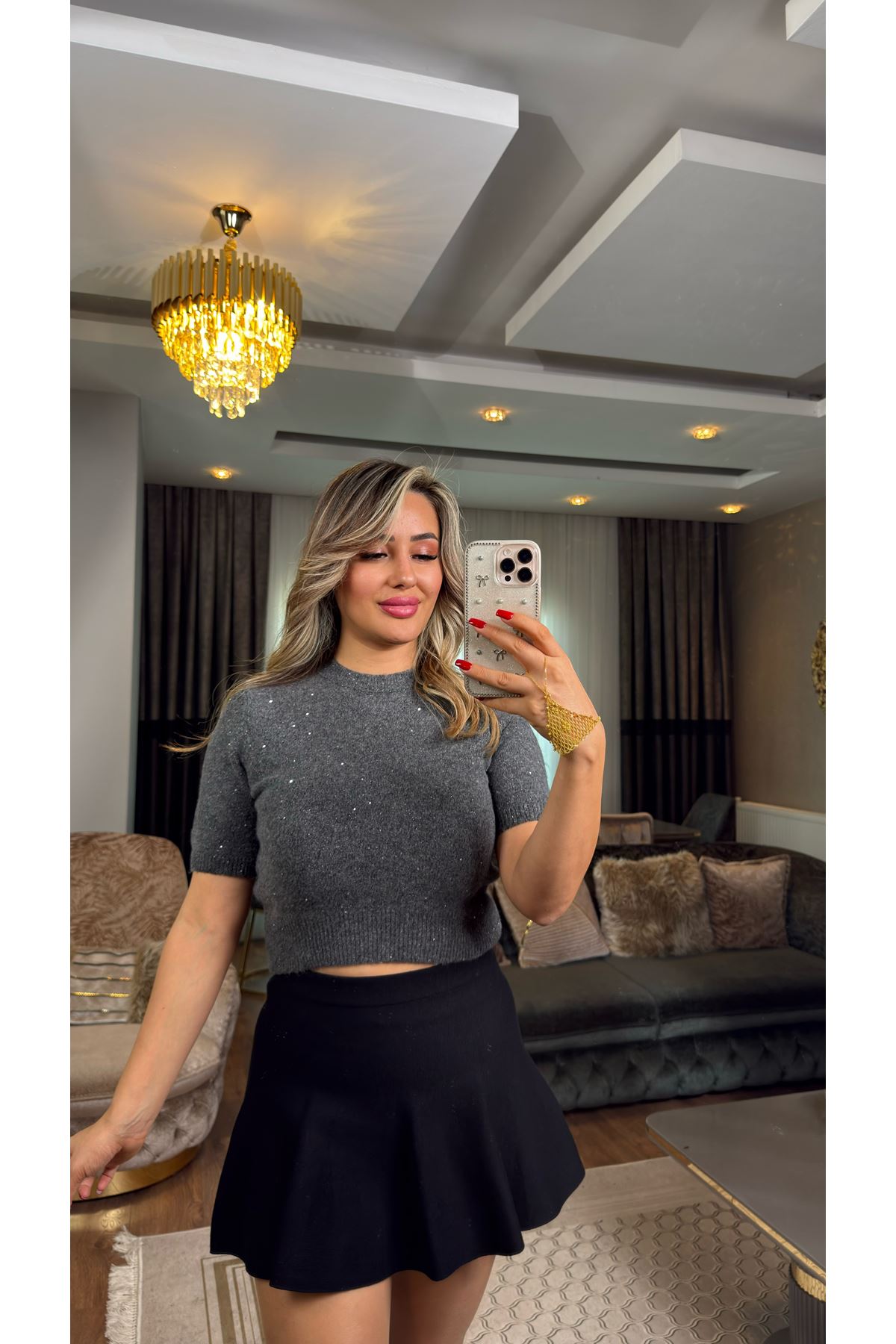 dilvin bisiklet yaka pullu simli triko kazak-antrasit