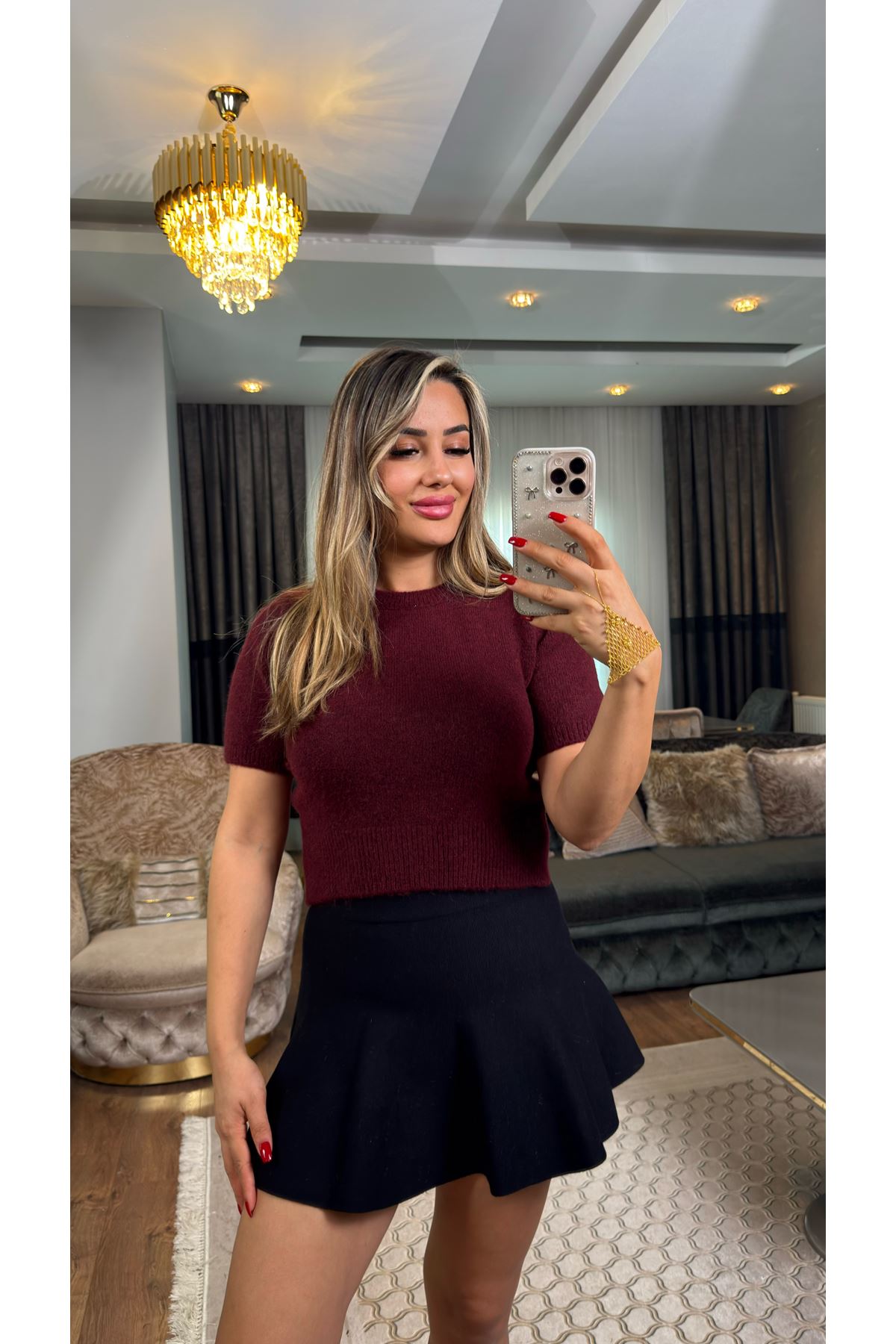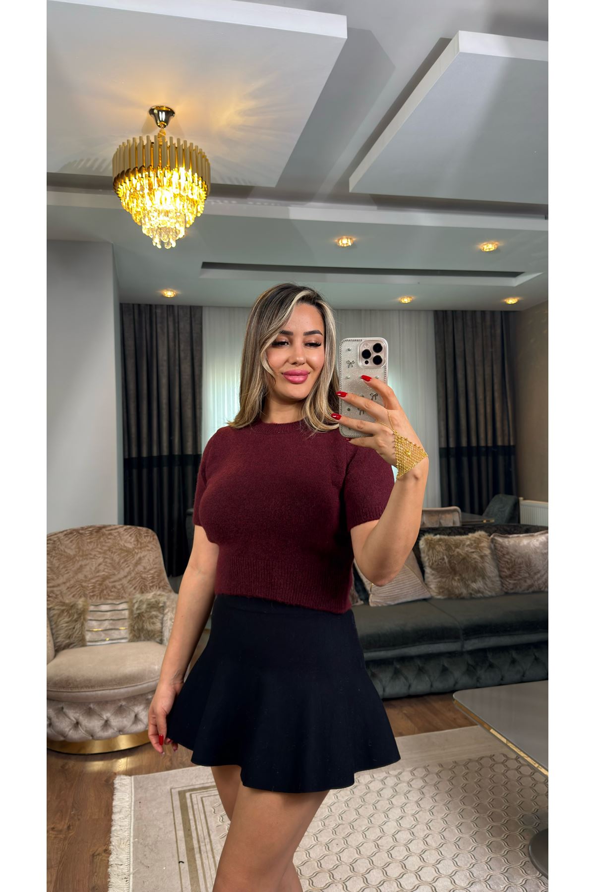 dilvin bisiklet yaka yumuşak dokulu kısa kol triko kazak-bordo