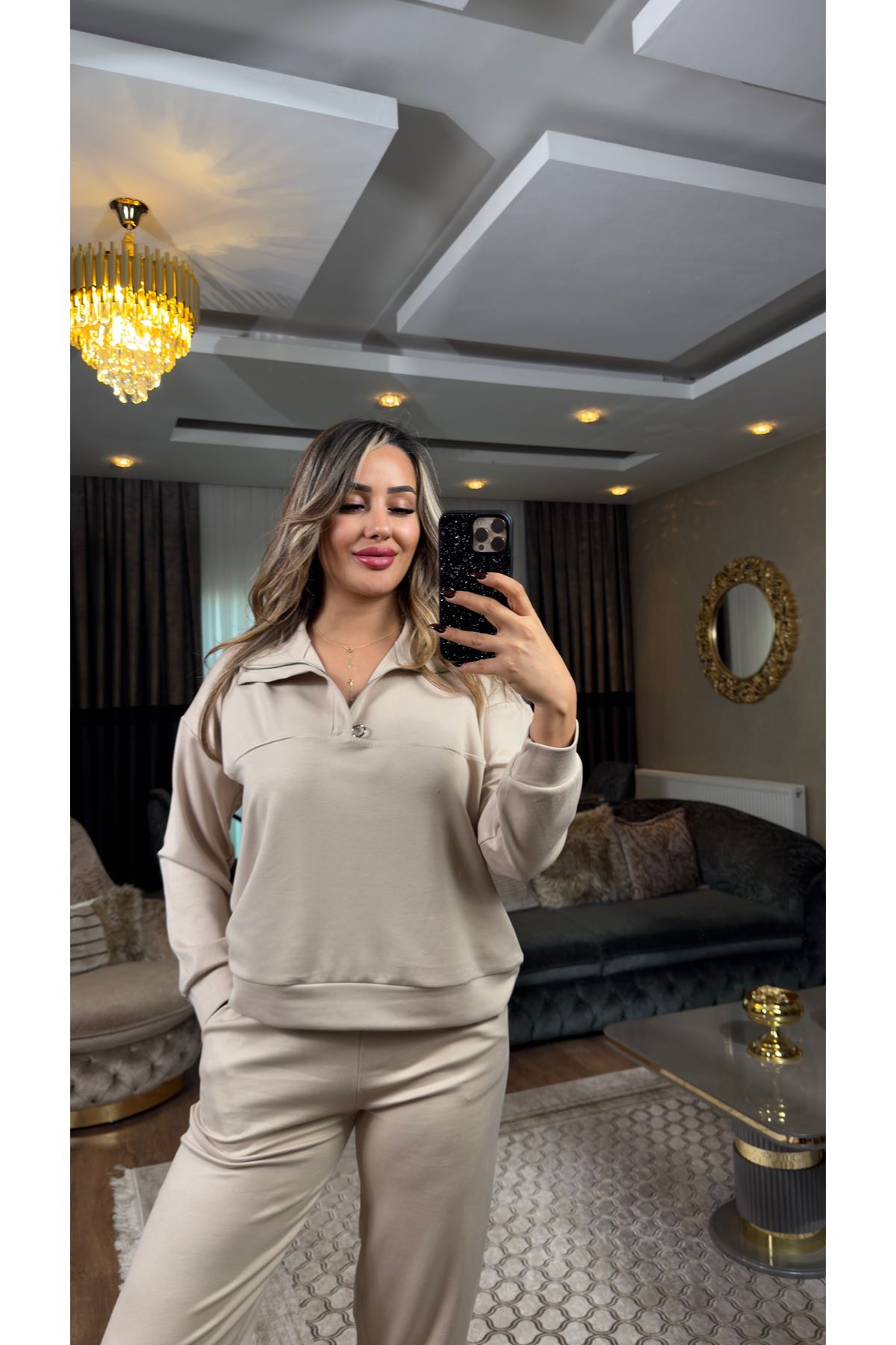3 İplik Bisiklet Yaka Eşofman Takımı Pembe