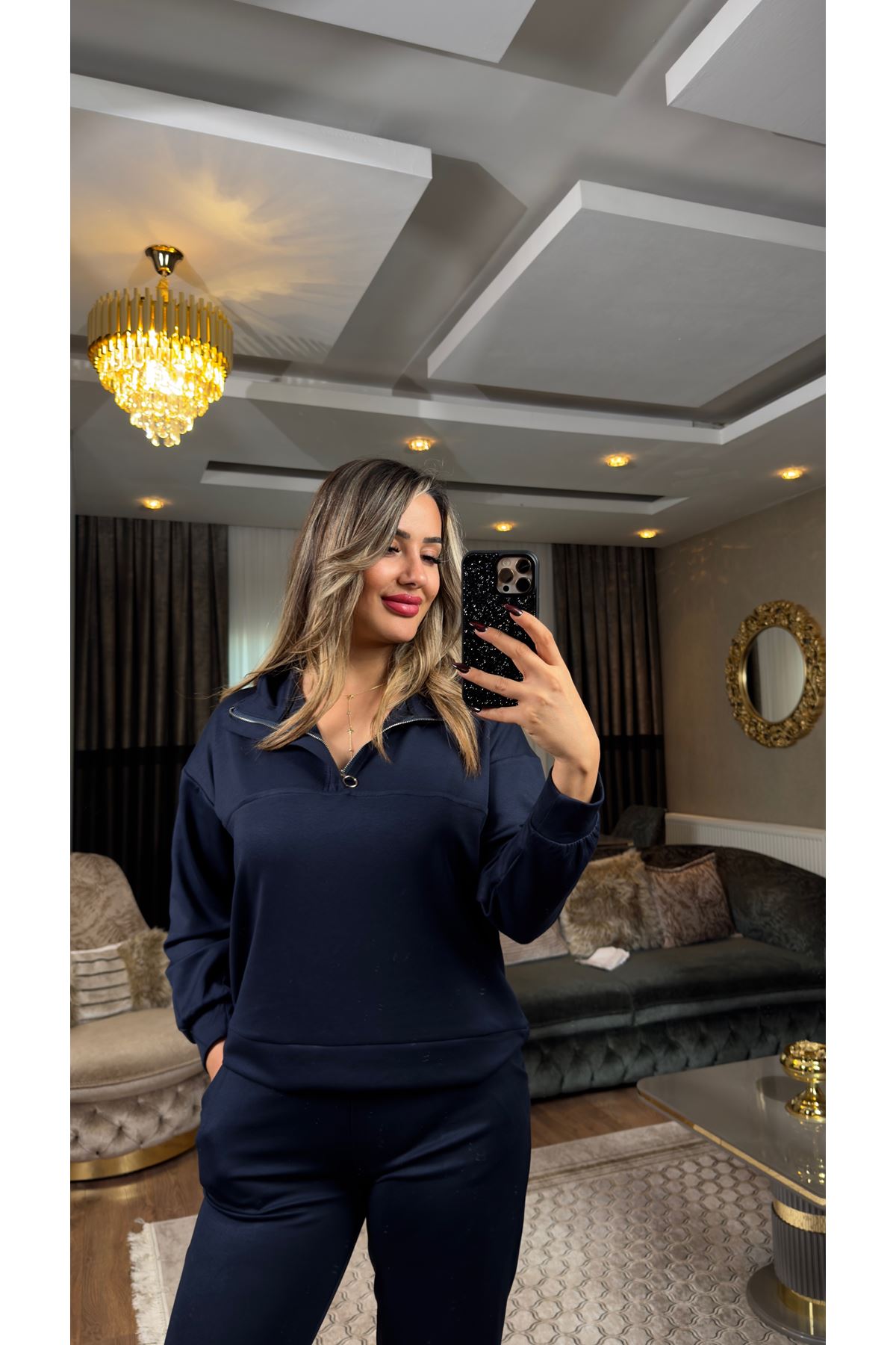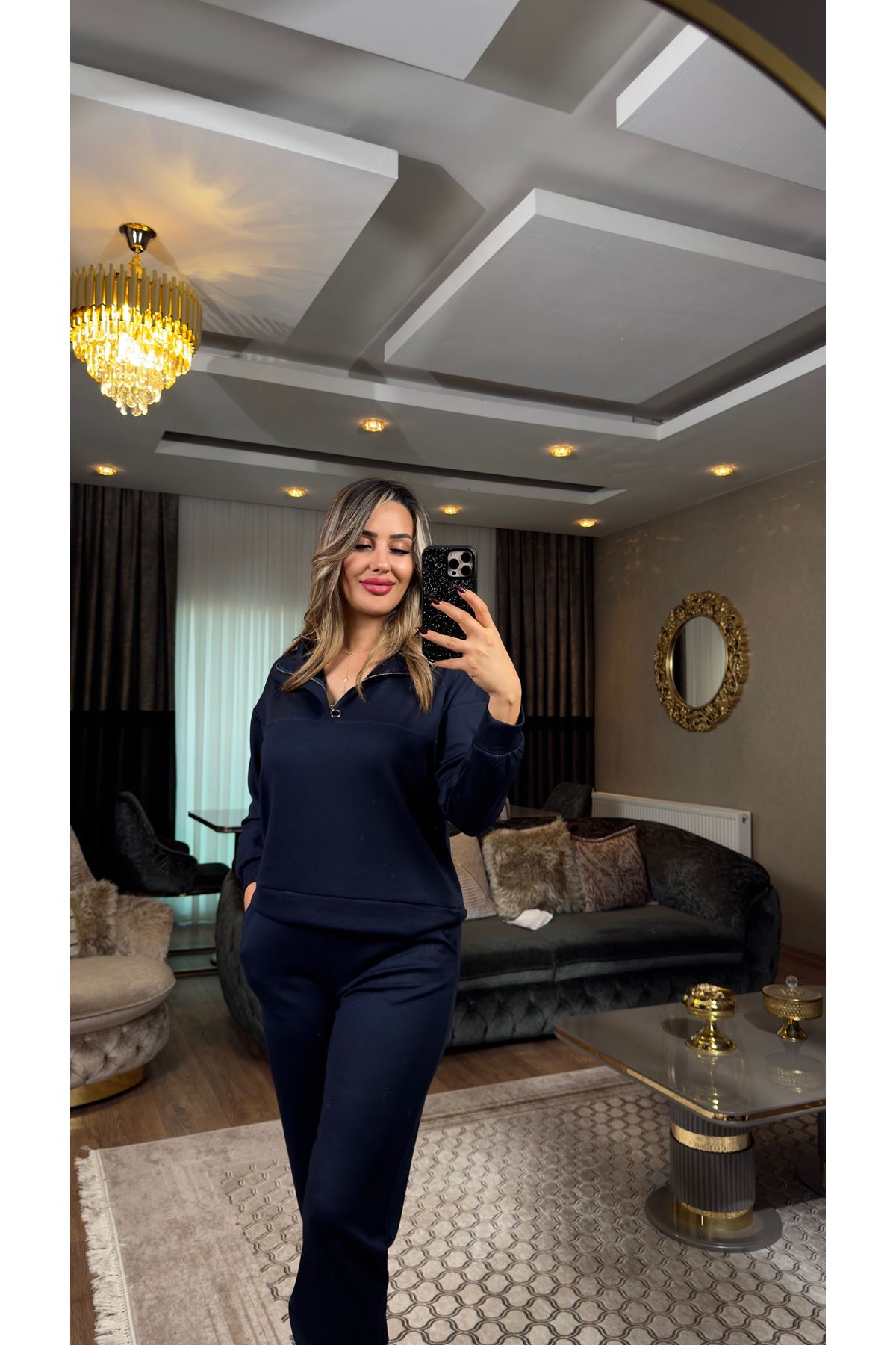 Fermuarlı Eşofman Takımı Siyahkırmızı