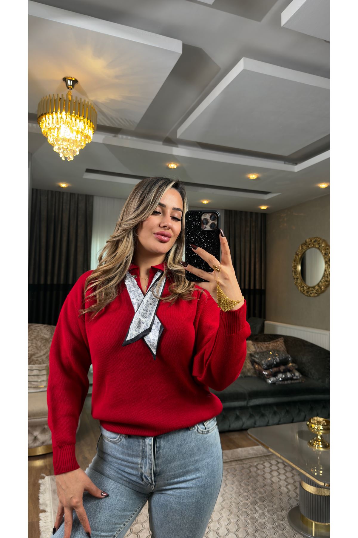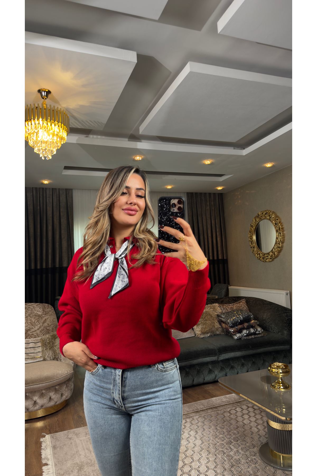 fularlı kazak-kırmızı