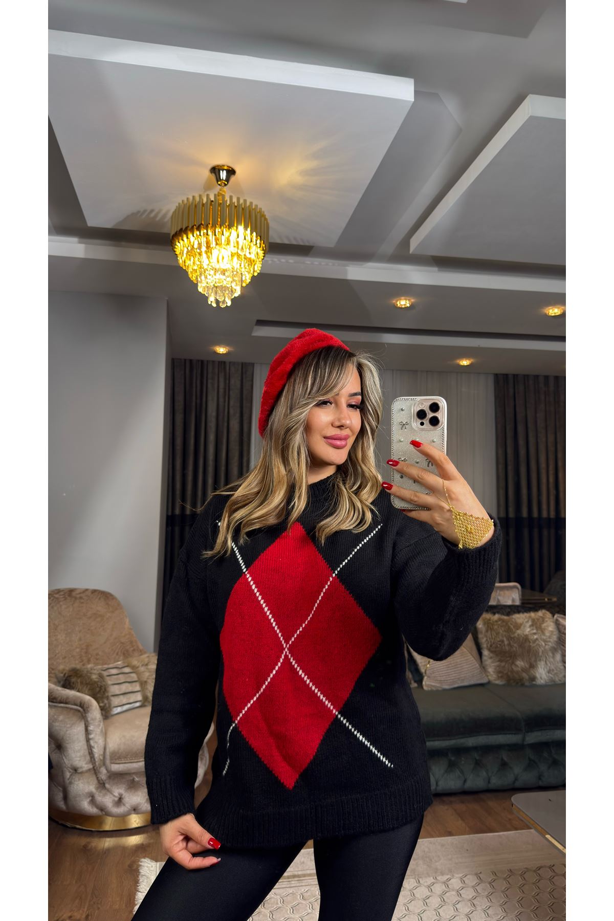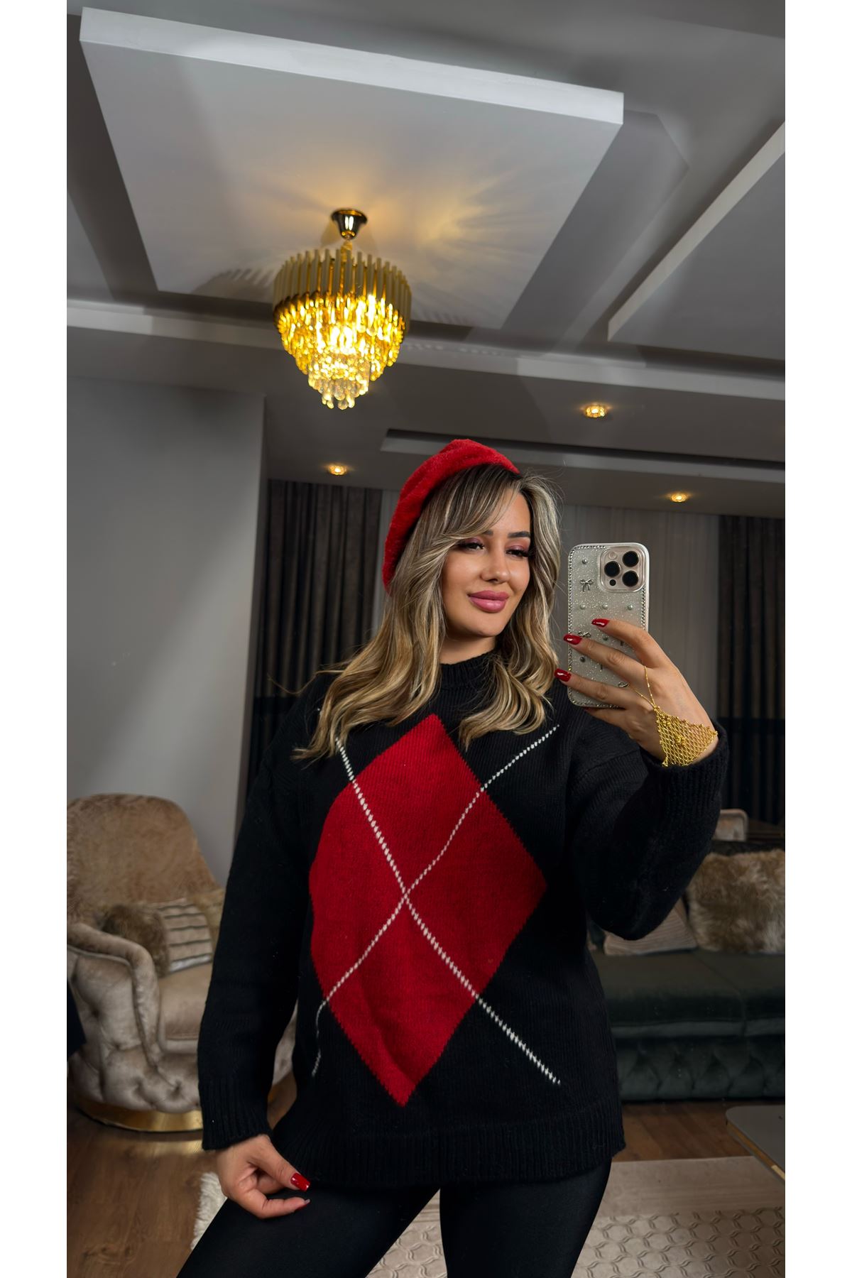 ZİKZAK DESEN SİMLİ TRİKO-KIRMIZI
