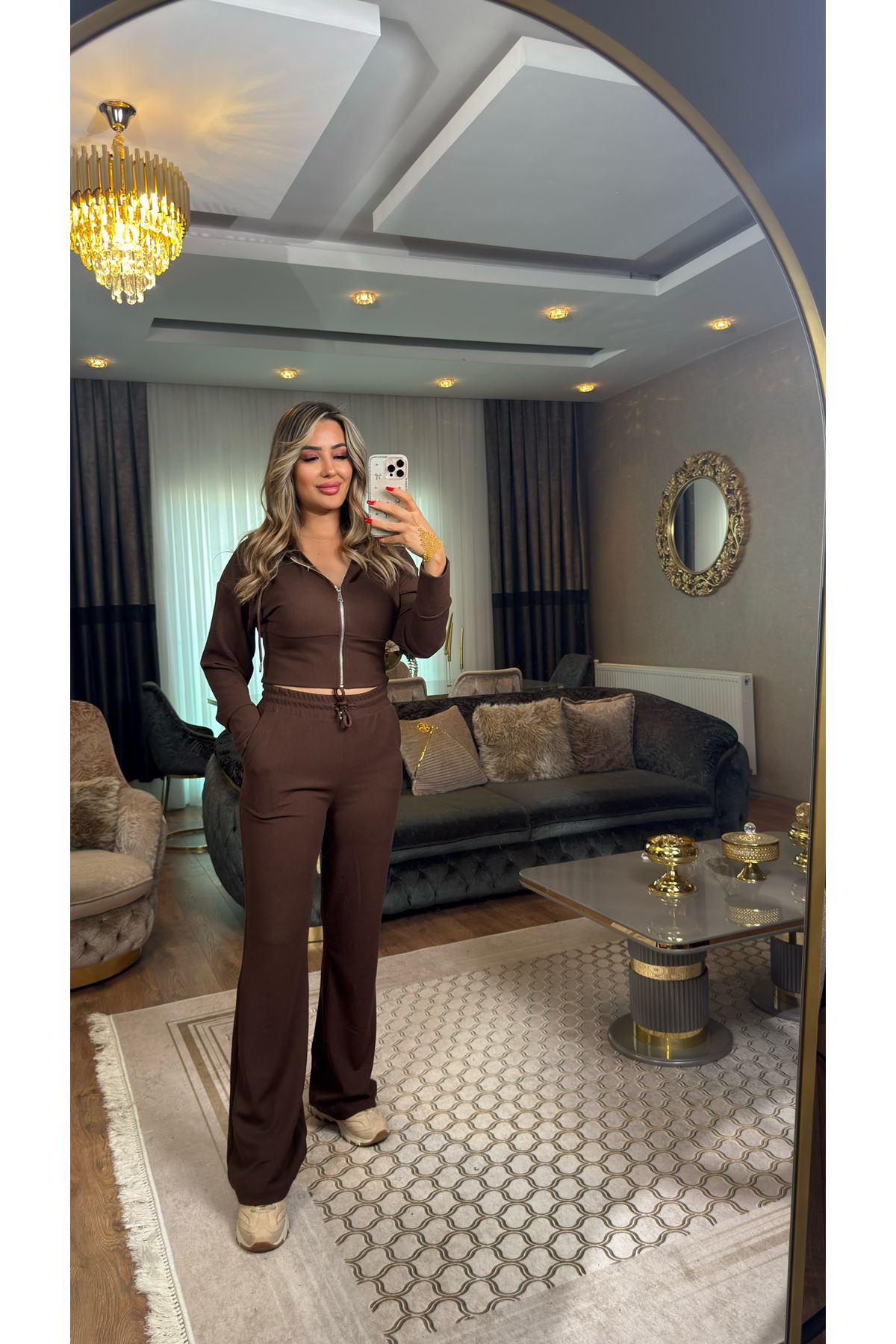 kapşonlu fermuarlı selanik takım-kahve