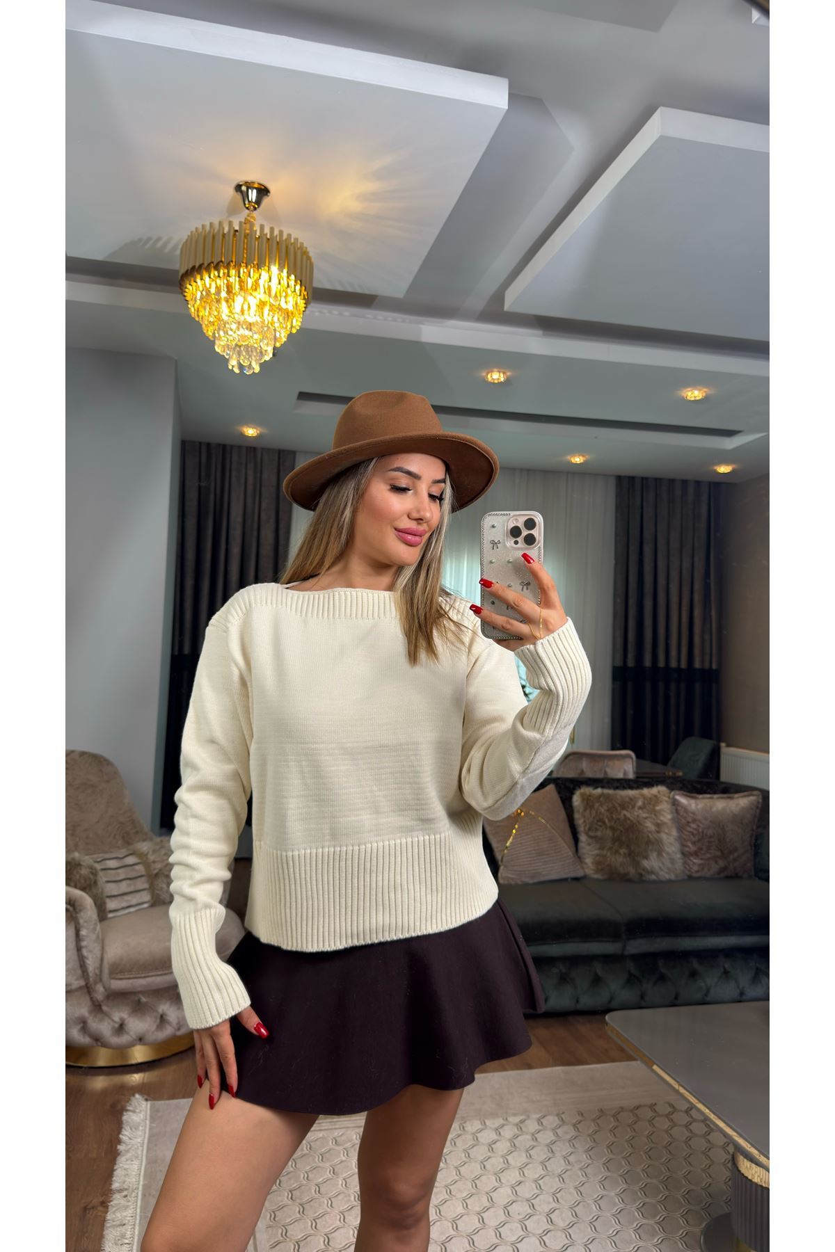 dilvin bisiklet yaka önü taş işlemeli kazak-bej