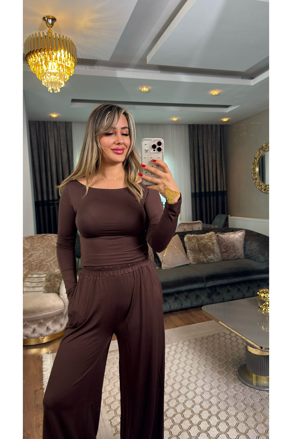 TERİKOTON CEPLİ GÖMLEK-KAHVE