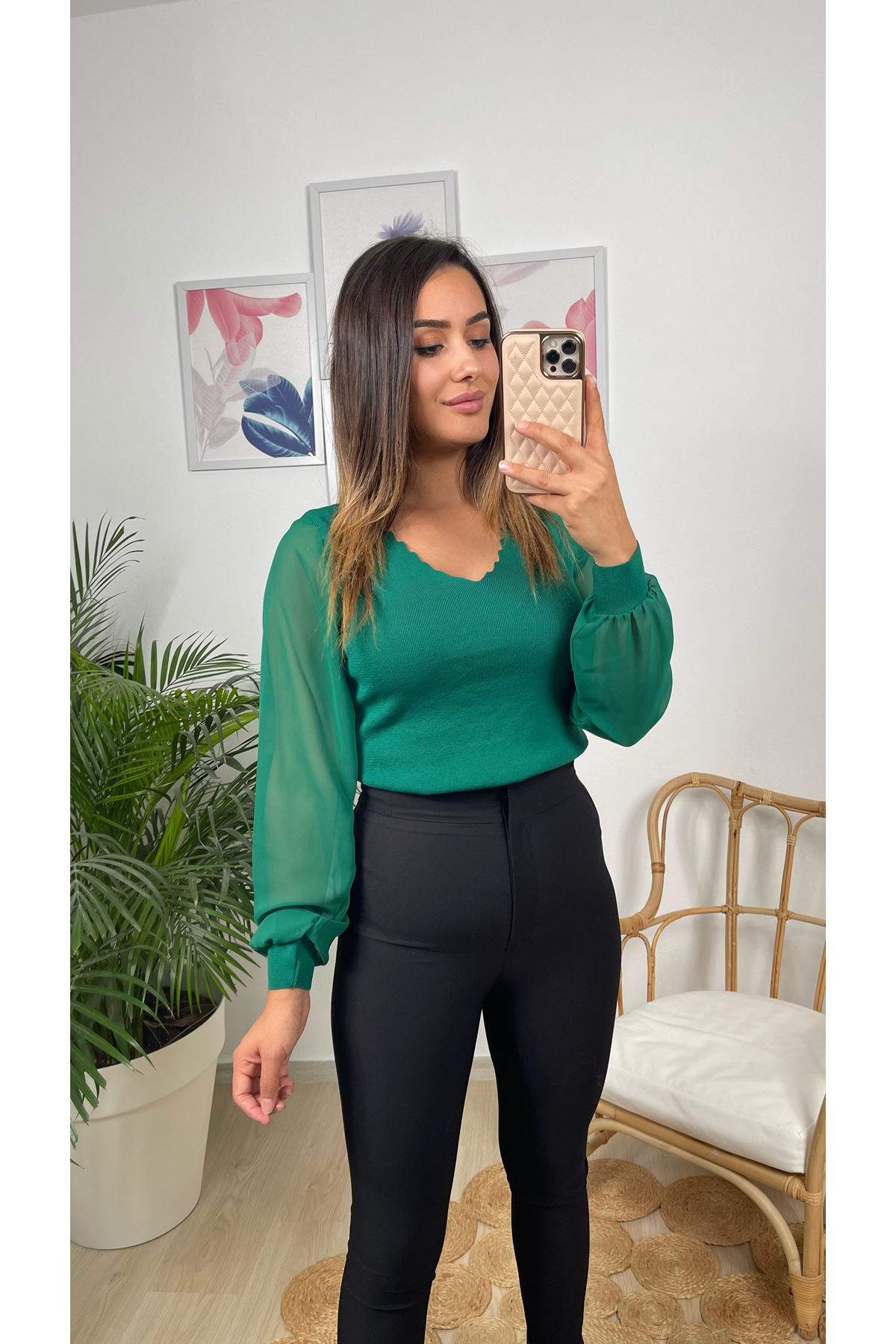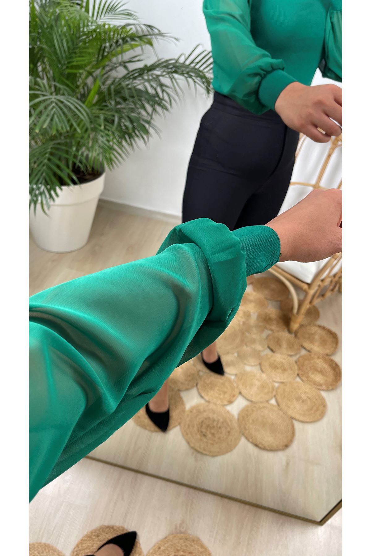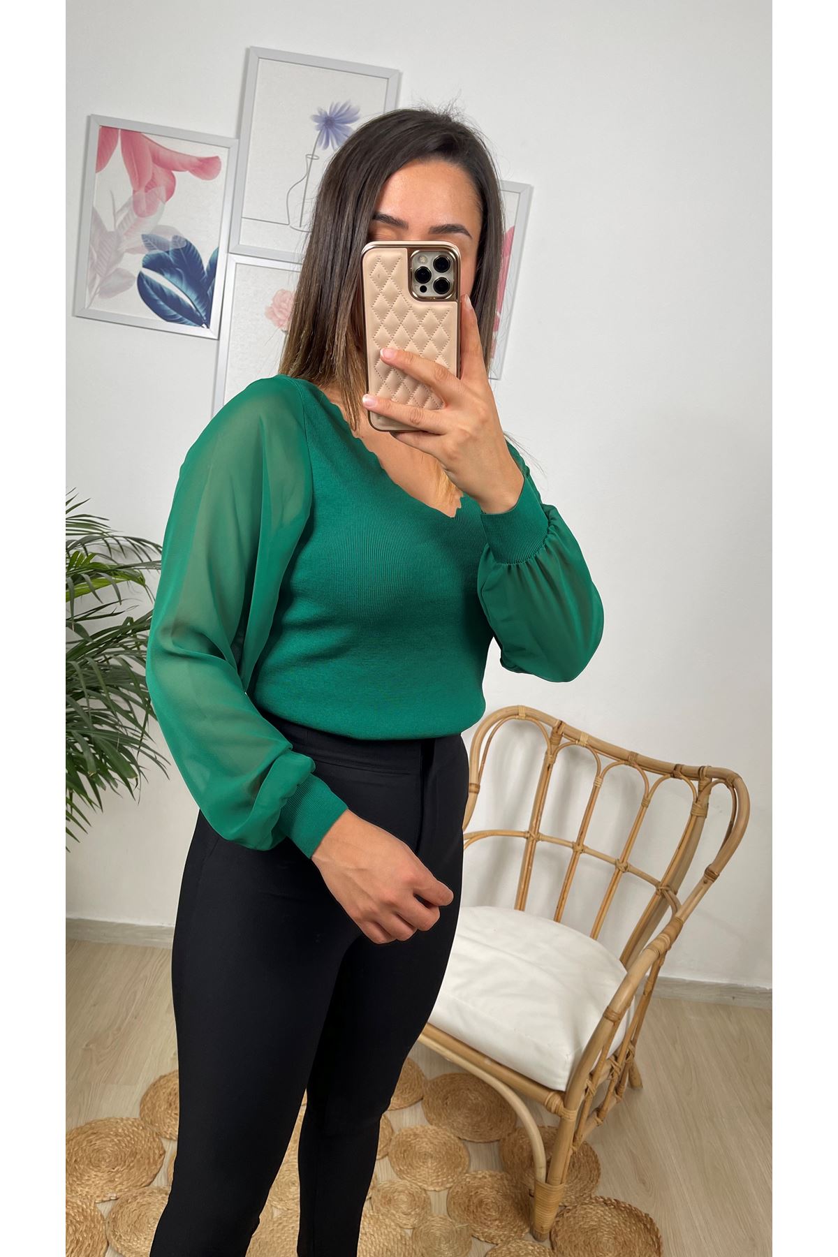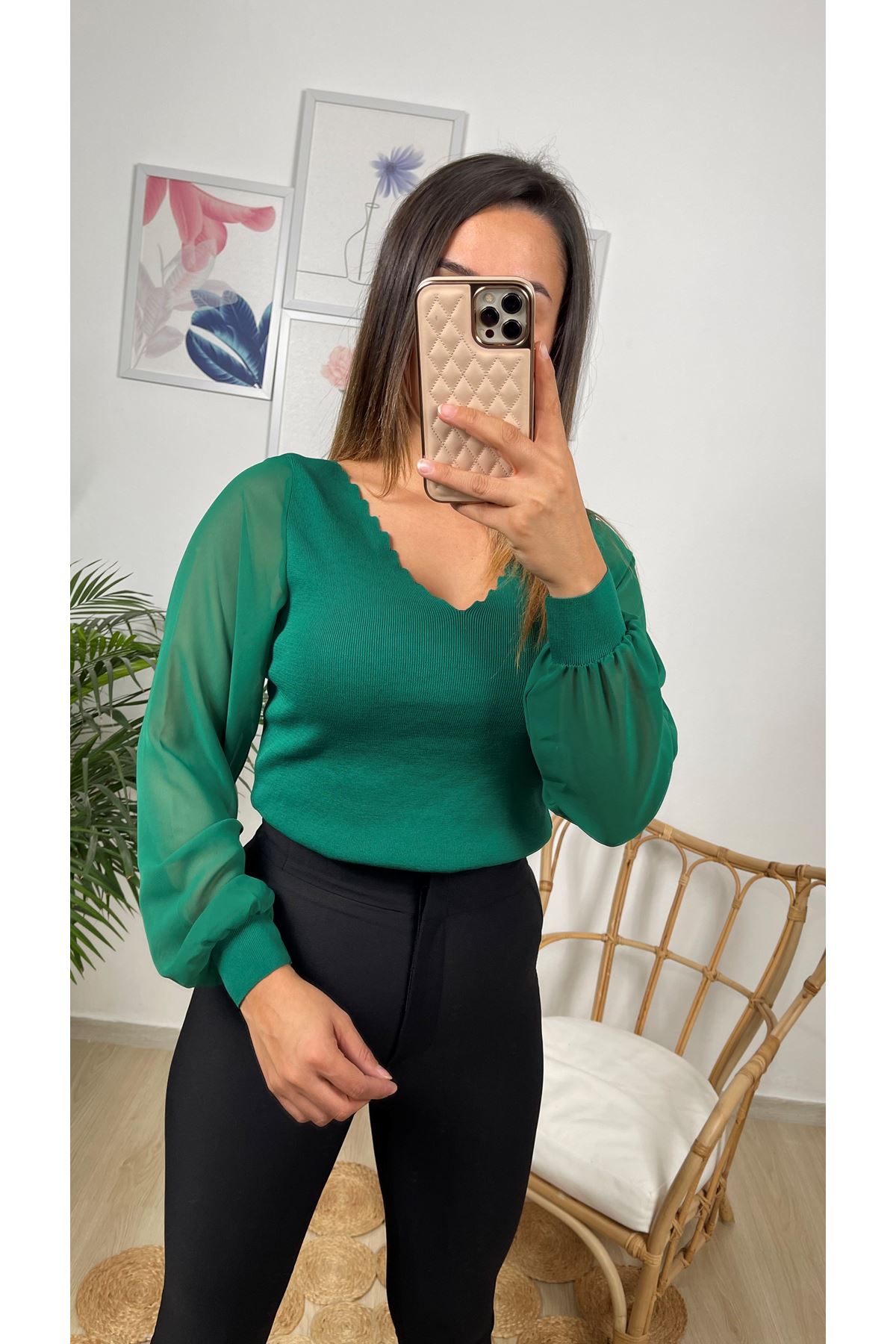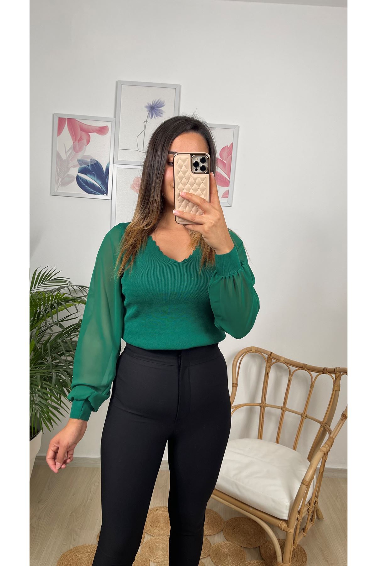 dilvin dantel şeritli uzun kollu bluz-siyah