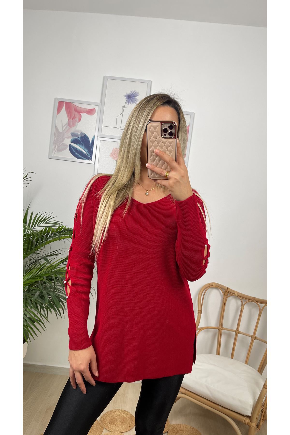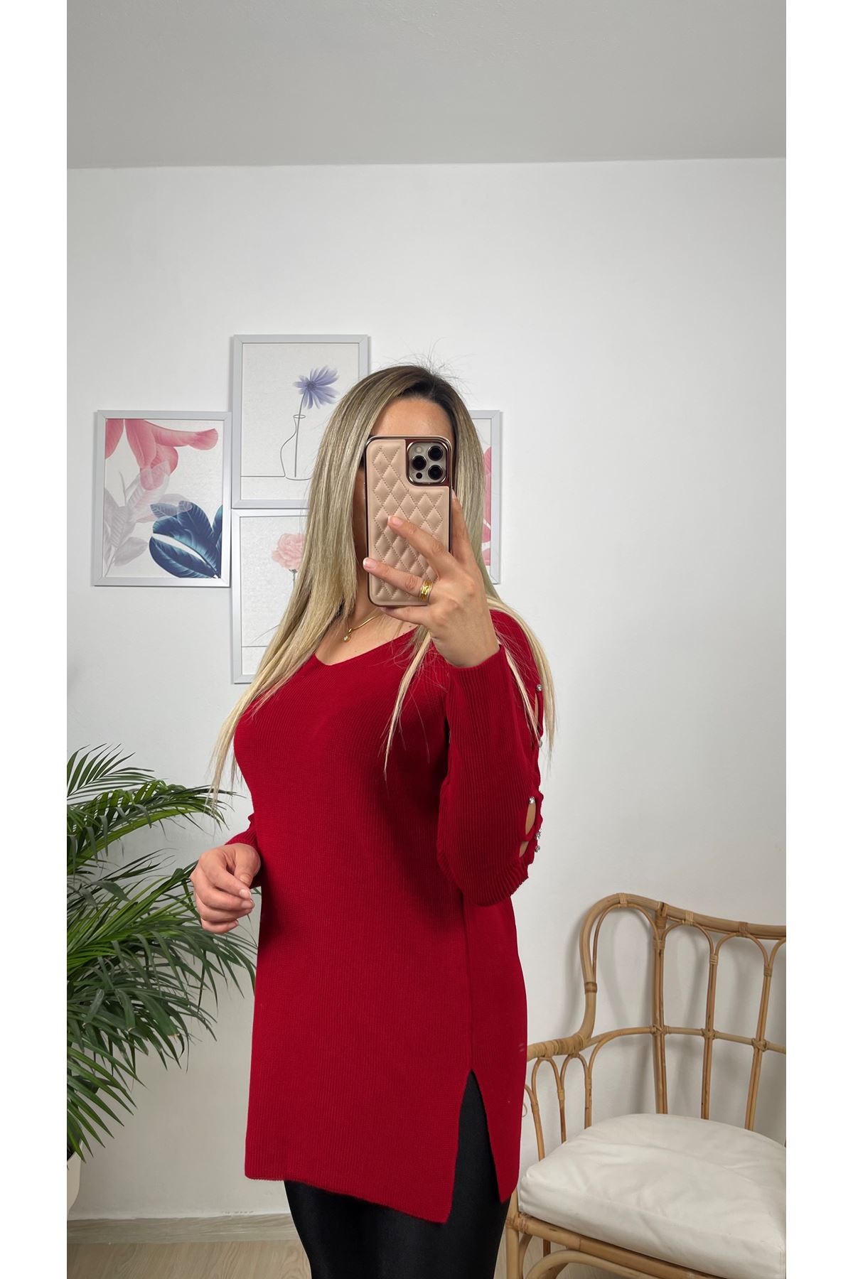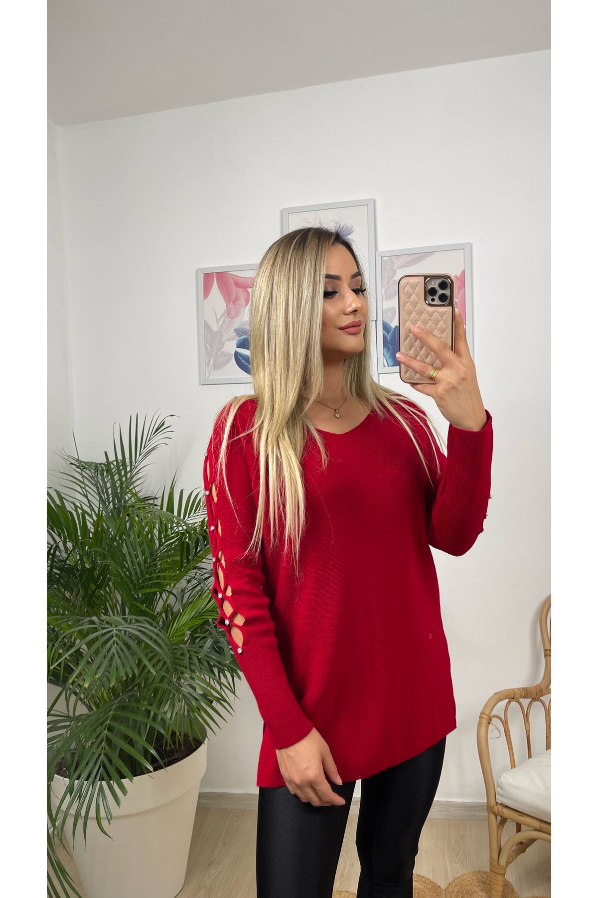 KOLU TAŞ İŞLEMELİ KAZAK -KIRMIZI