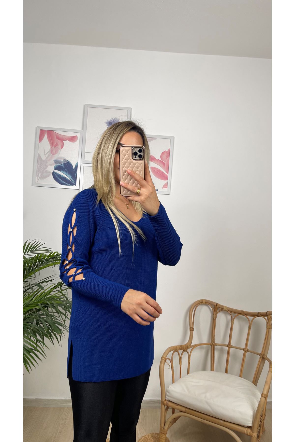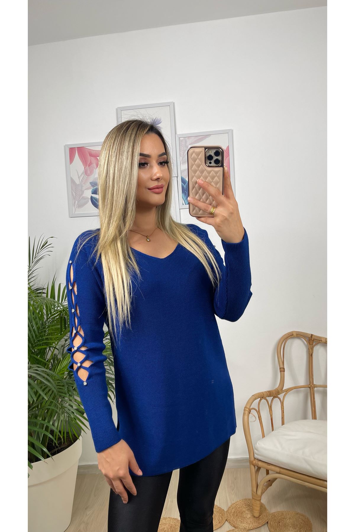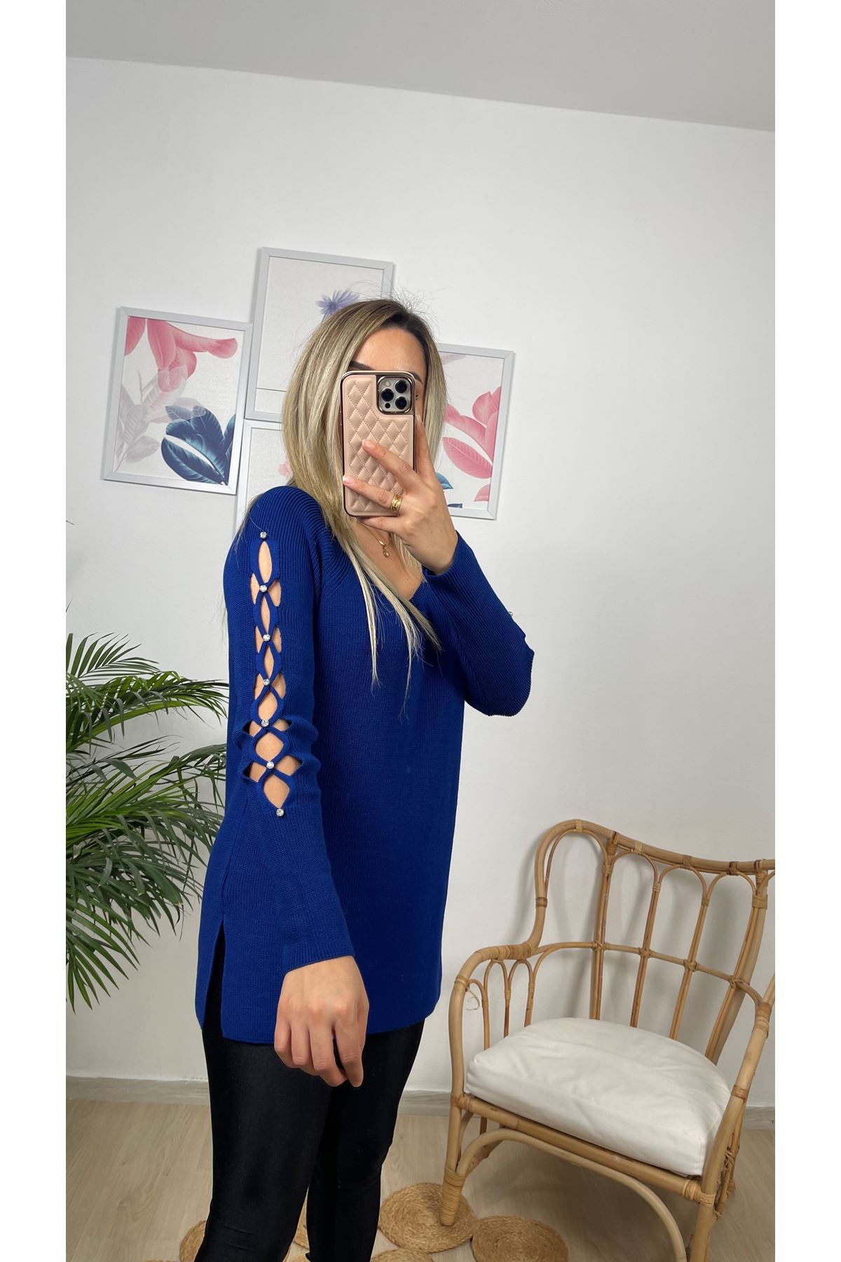 KOLU TAŞ İŞLEMELİ KAZAK -MAVİ