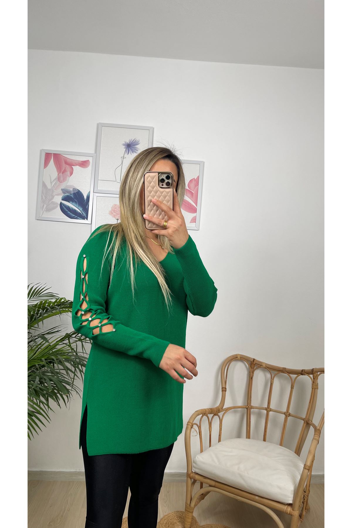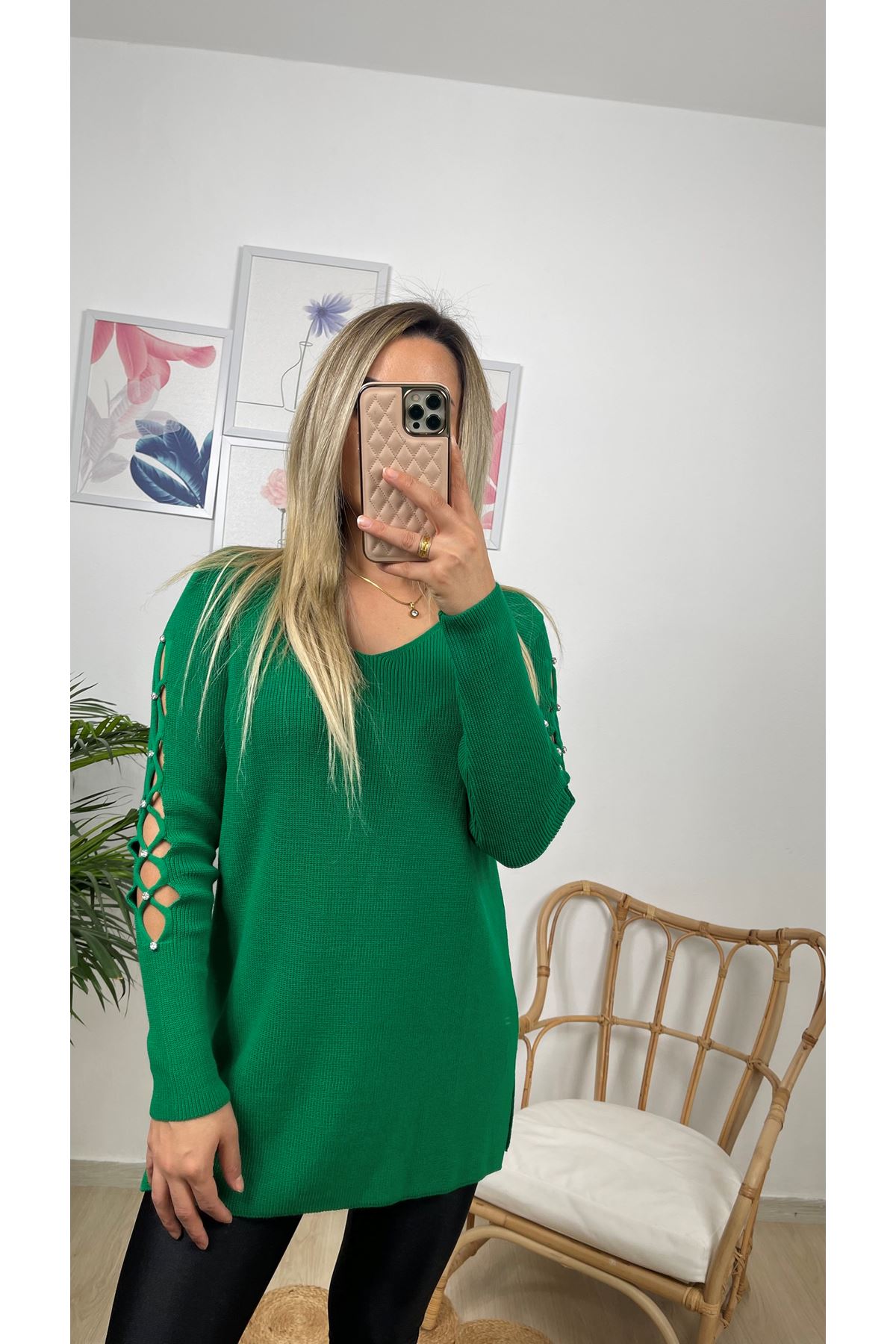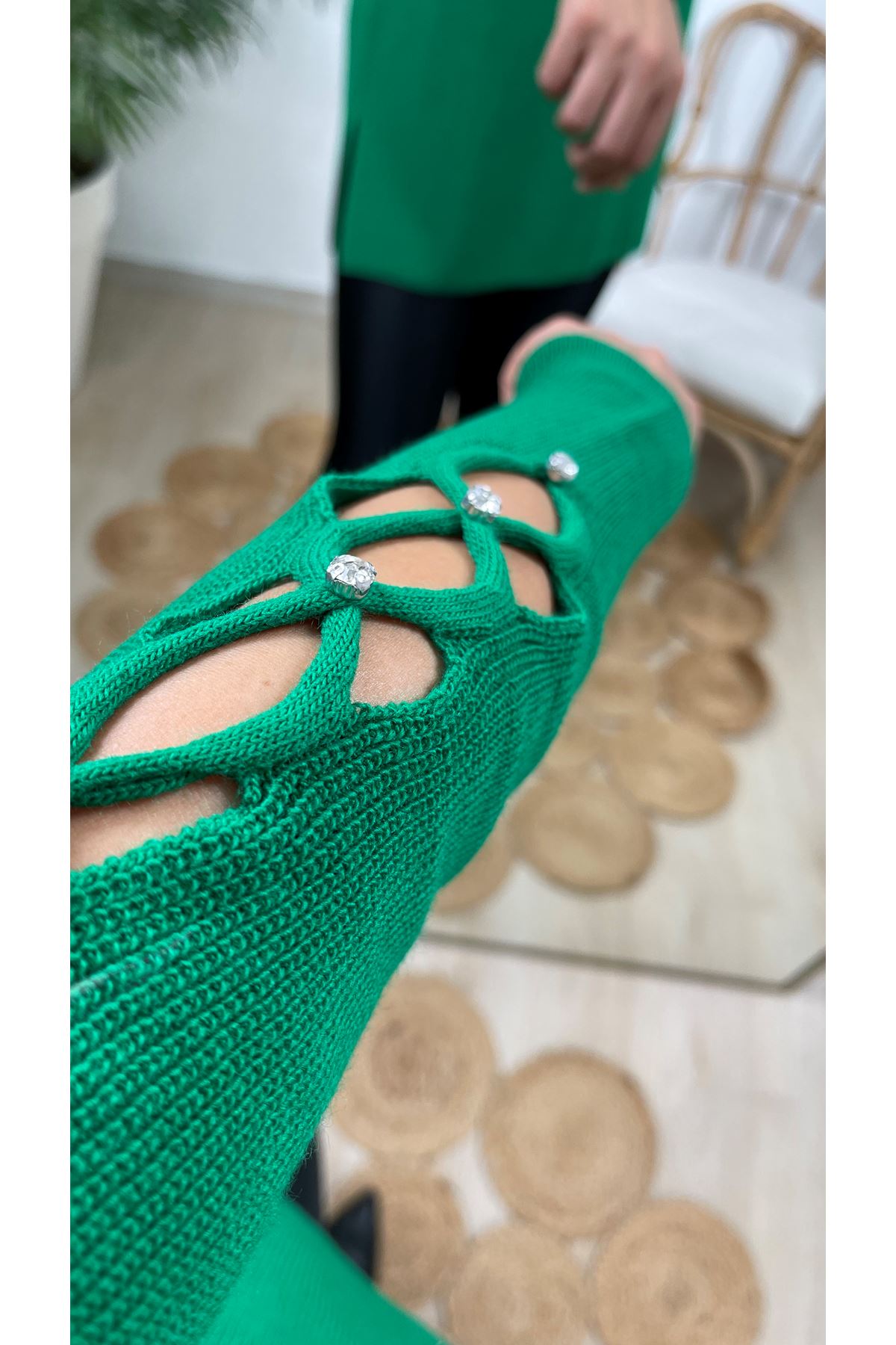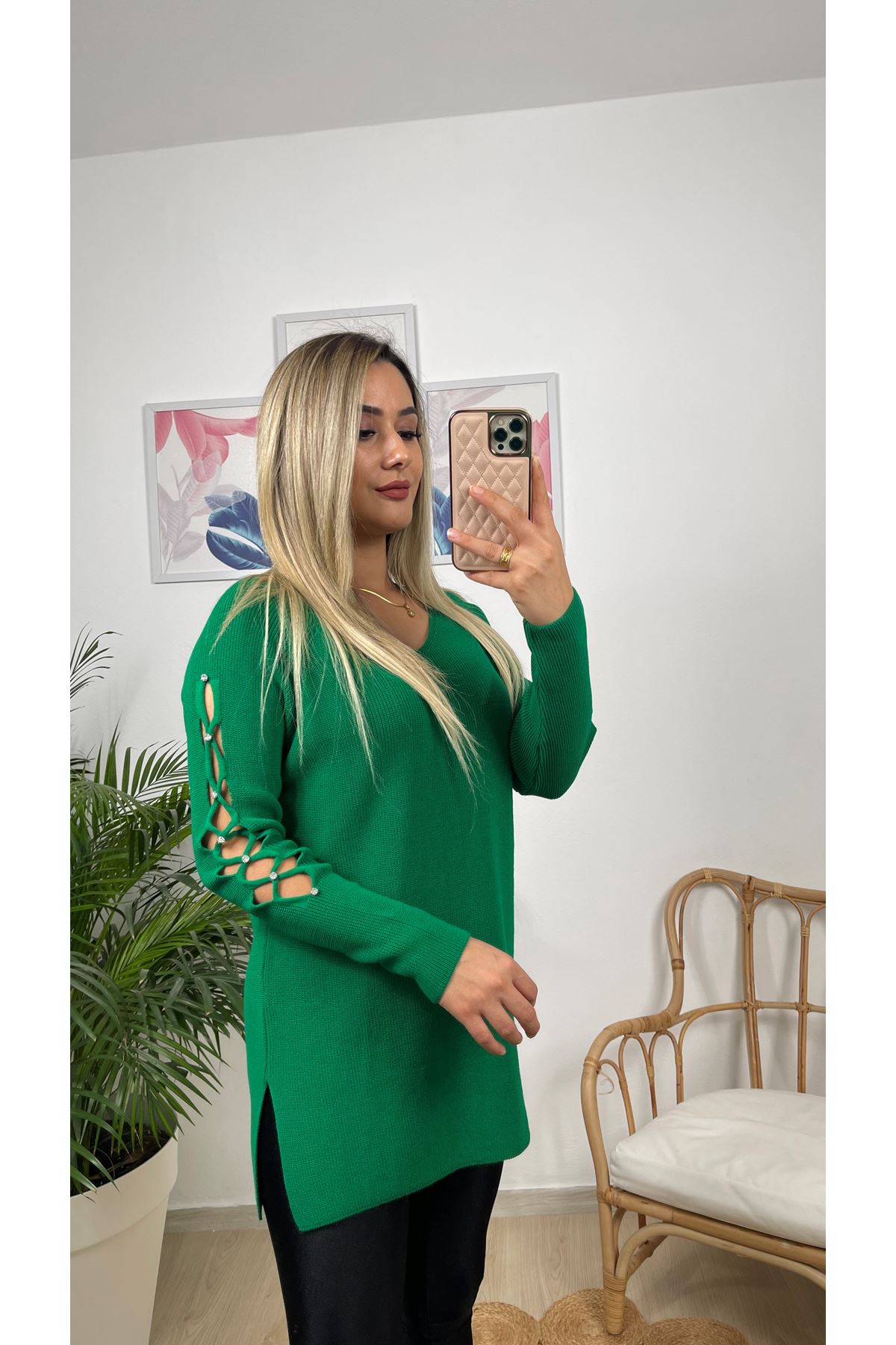 KOLU TAŞ İŞLEMELİ KAZAK -YEŞİL