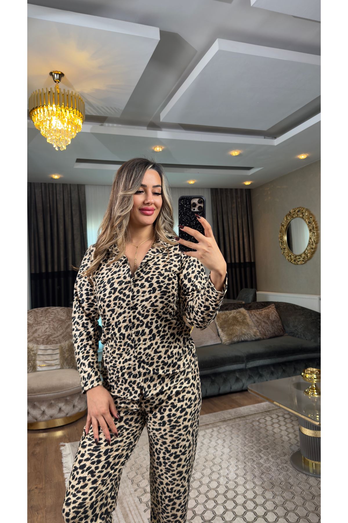 kareli ayıcık desen düğmeli süet pijama takımı-gri