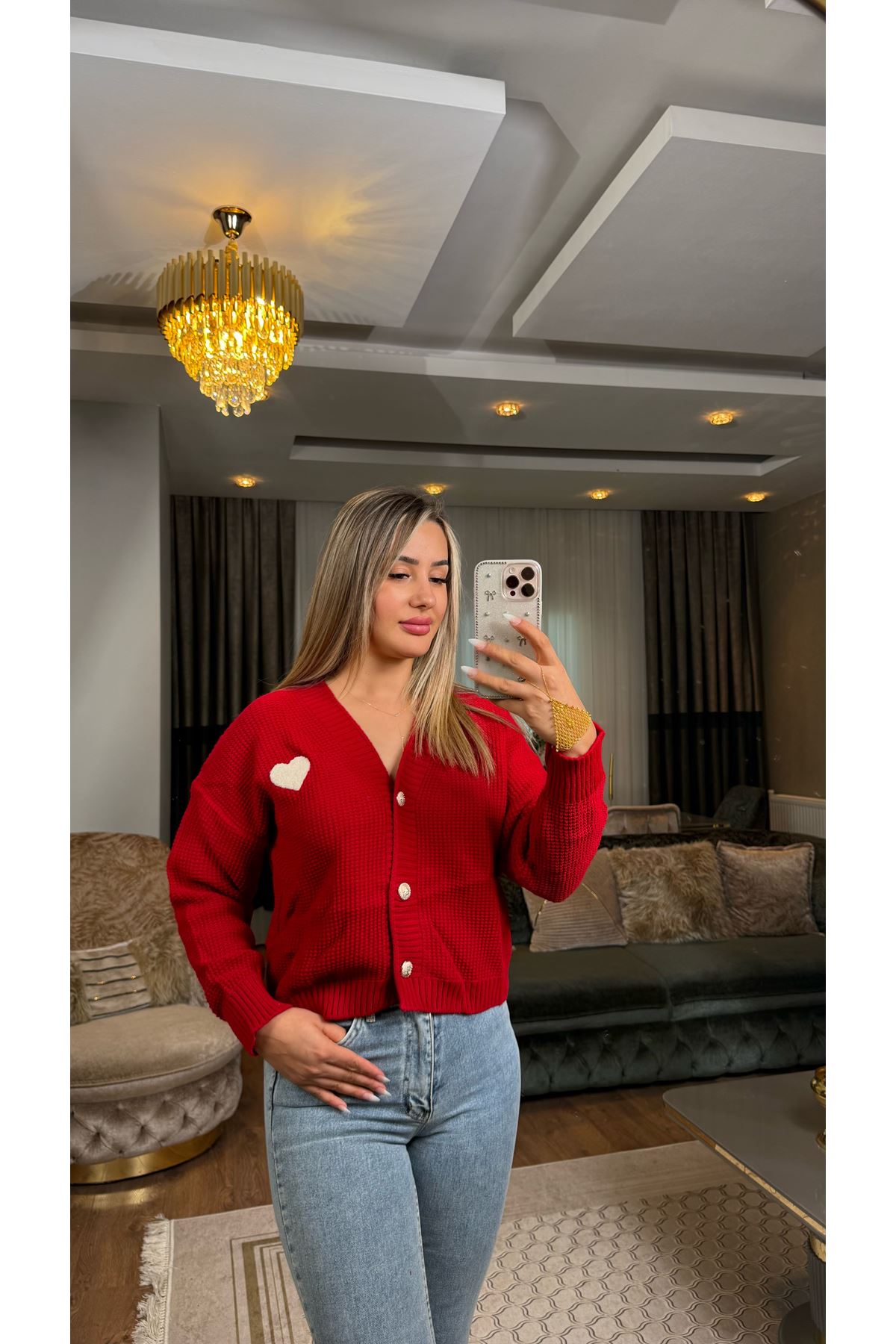 Nakışlı Kalpli Hırka Yağyeşililatte