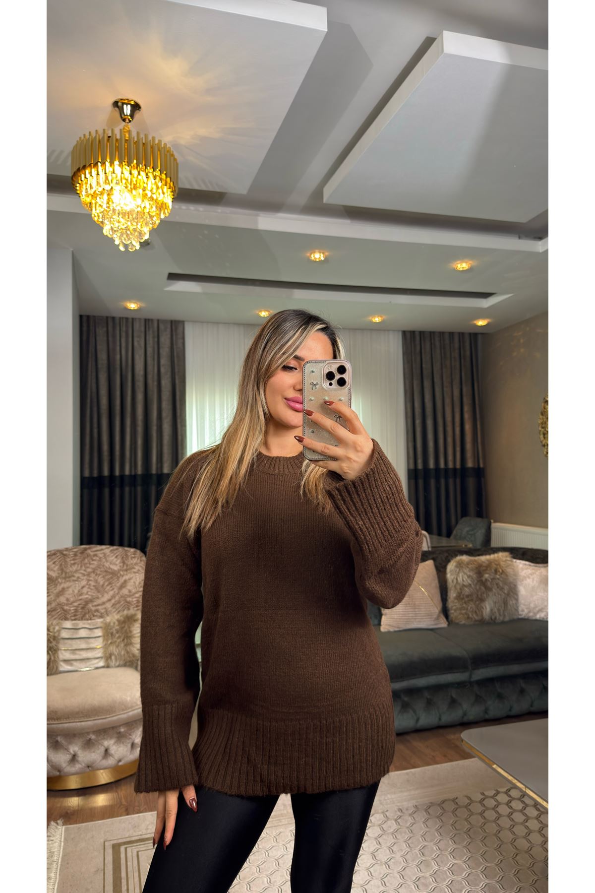 dilvin v yaka taş düğmeli cepli yumuşak dokulu triko hırka-vizon