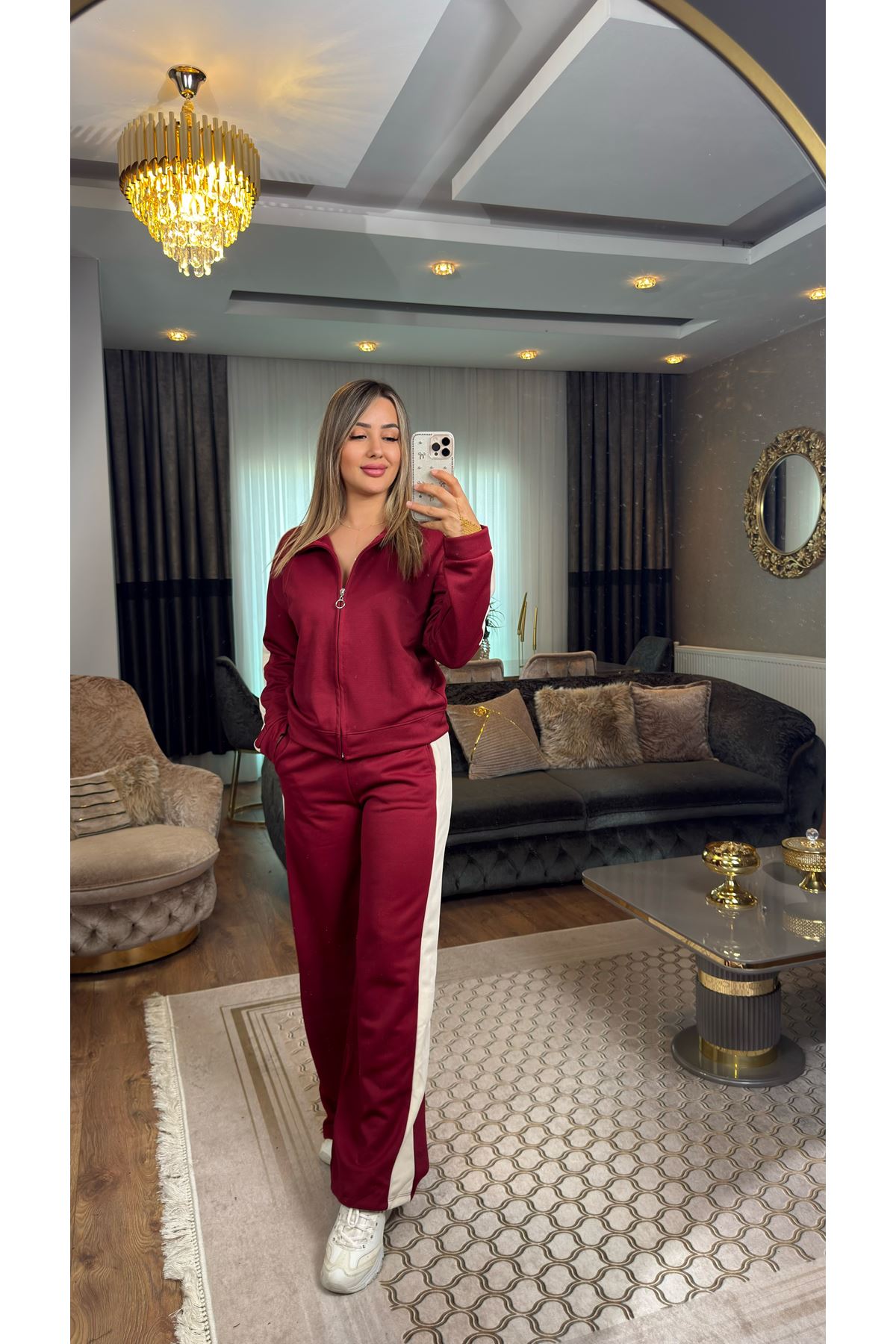 Fermuarlı Eşofman Takımı Siyahkırmızı
