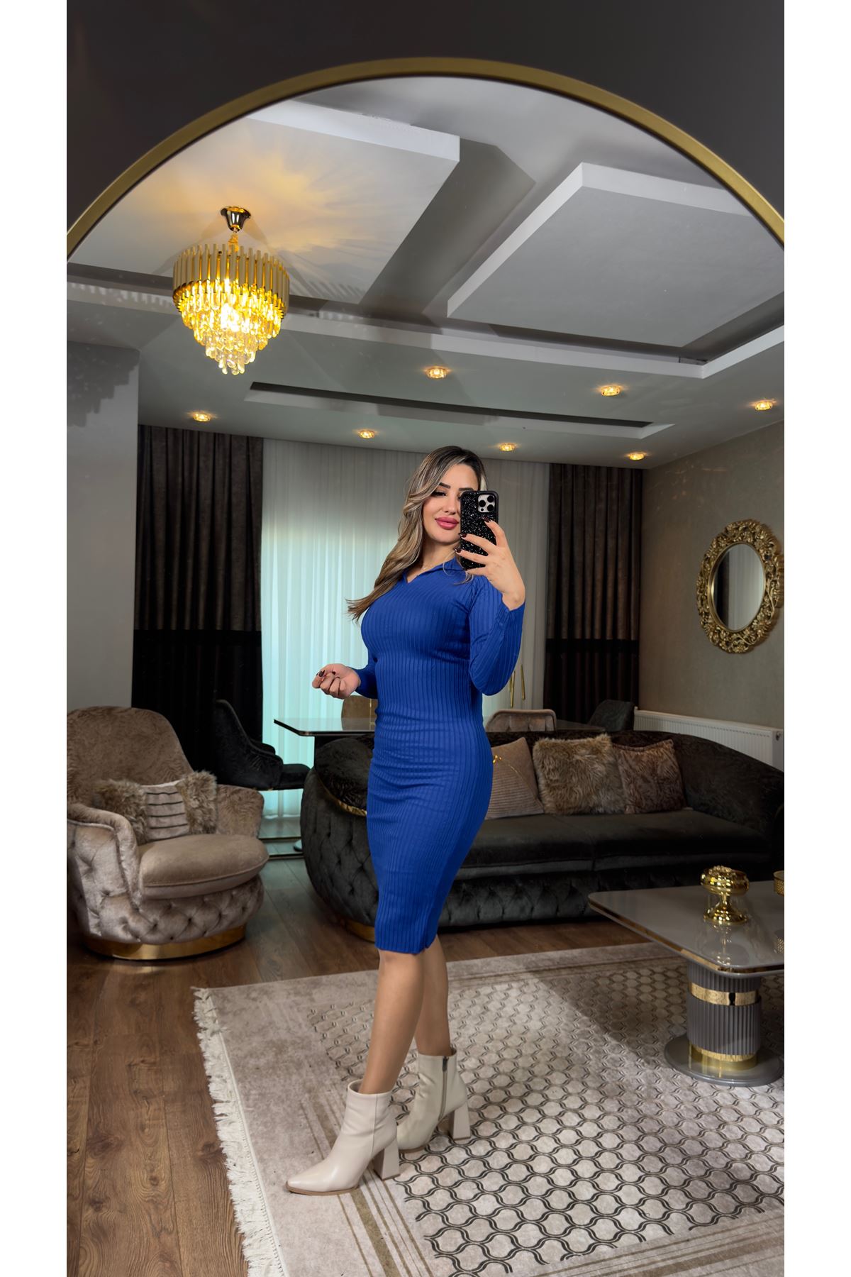 DİLVİN SOLUK EFEKTLİ KOL YIRTMAÇ DETAYLI FERMUARLI HIRKA-İNDİGO