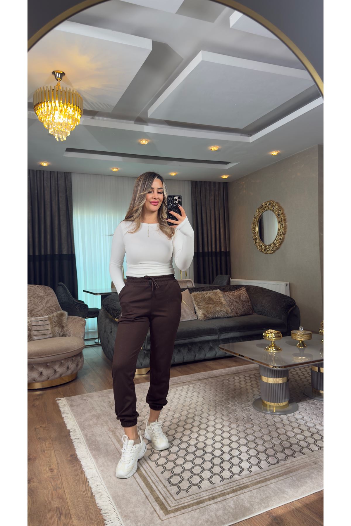 premium pamuklu oysho lastikli eşofman-acıkahve