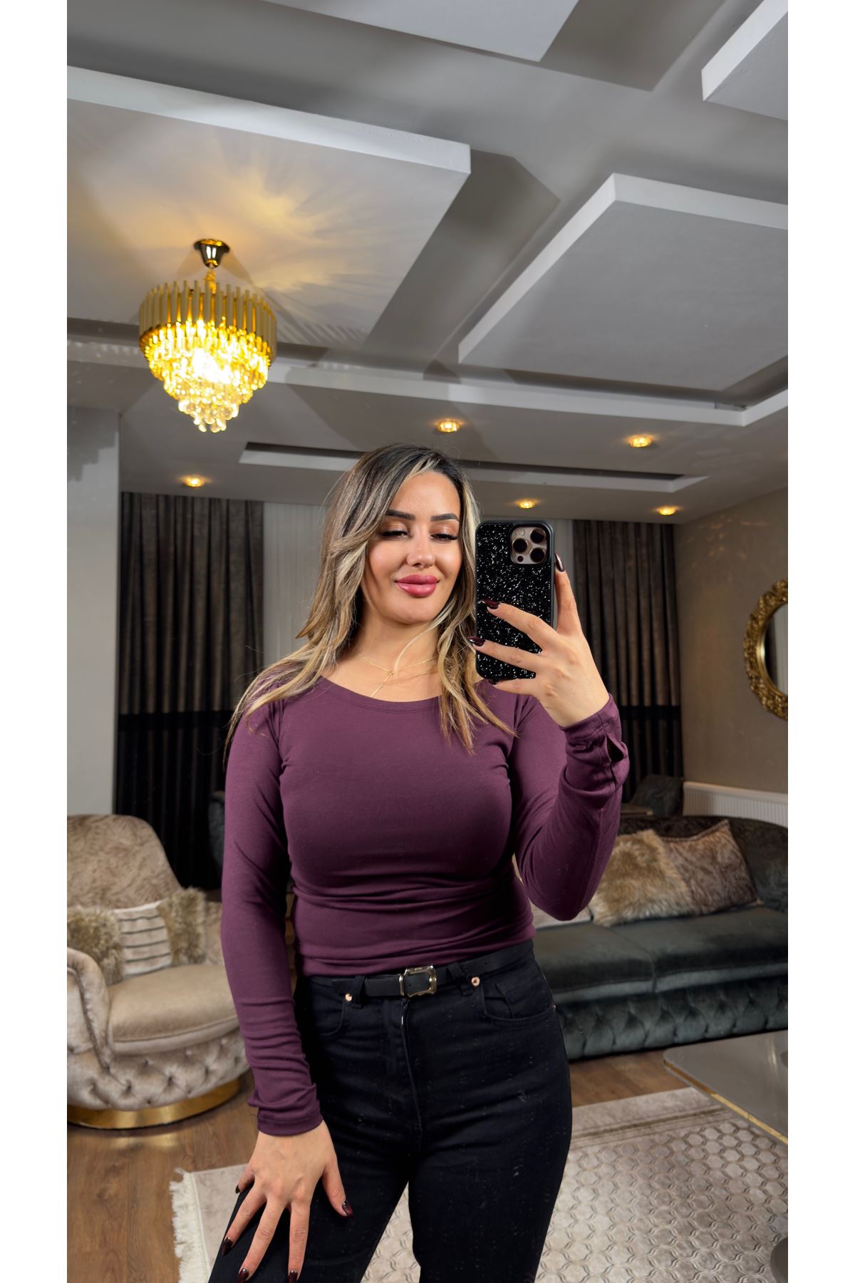 premium parmak geçmeli kayık yaka bluz-mürdüm