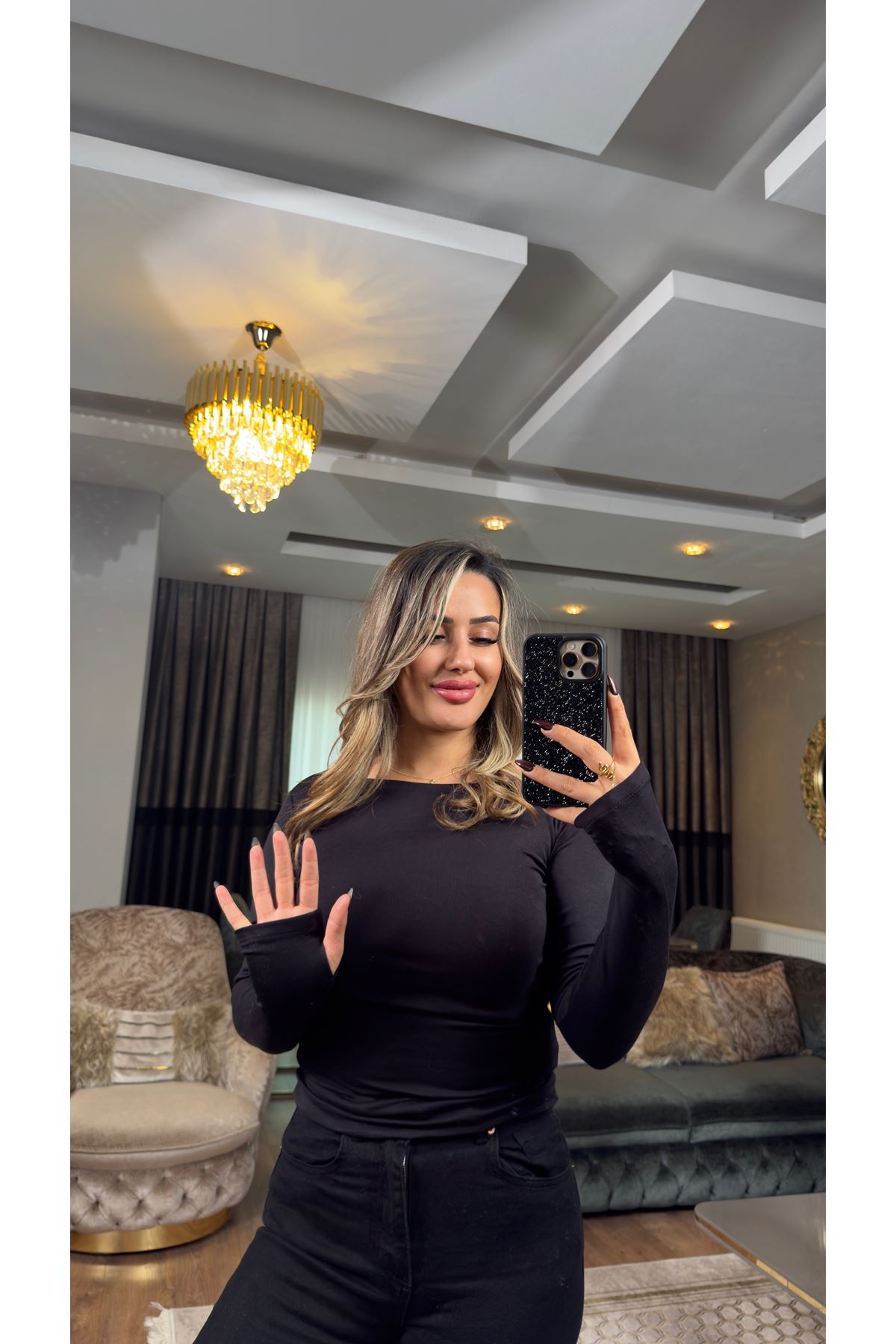 dilvin dantel şeritli uzun kollu bluz-siyah