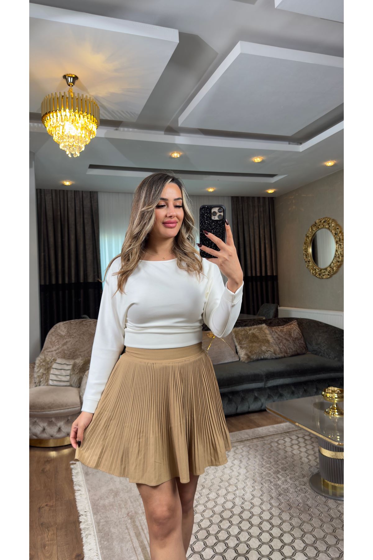dilvin boyundan geçmeli crop-ekru